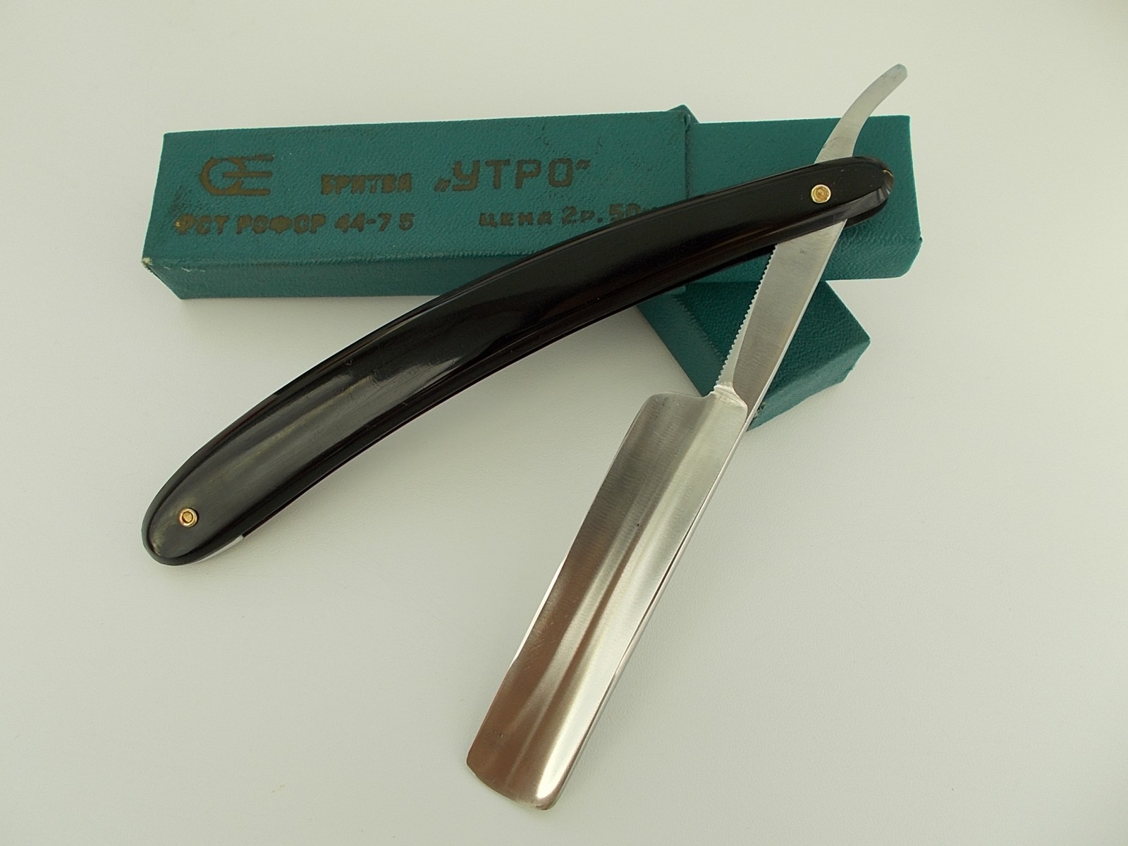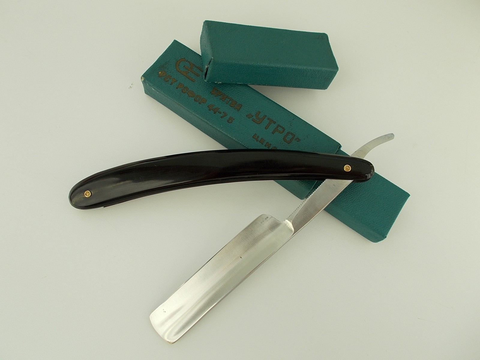 Продам опасную бритву "Утро" СТИЗ, 1970-е. Бритва после реставрации,прошла легкую очистку и полировку. Остались небольшие следы времени в виде темных точек на полотне. Бритва не разбиралась, все заводское. Клинок в оправе сидит плотно, по-центру, не болтается. Бритва не имеет следов использования, заточена мной впервые, готова к бритью. В комплекте кофр для хранения. Отличный и недорогой вариант для новичка. Отправляю почтой, пересыл входит в стоимость. Цена - ПРОДАНО