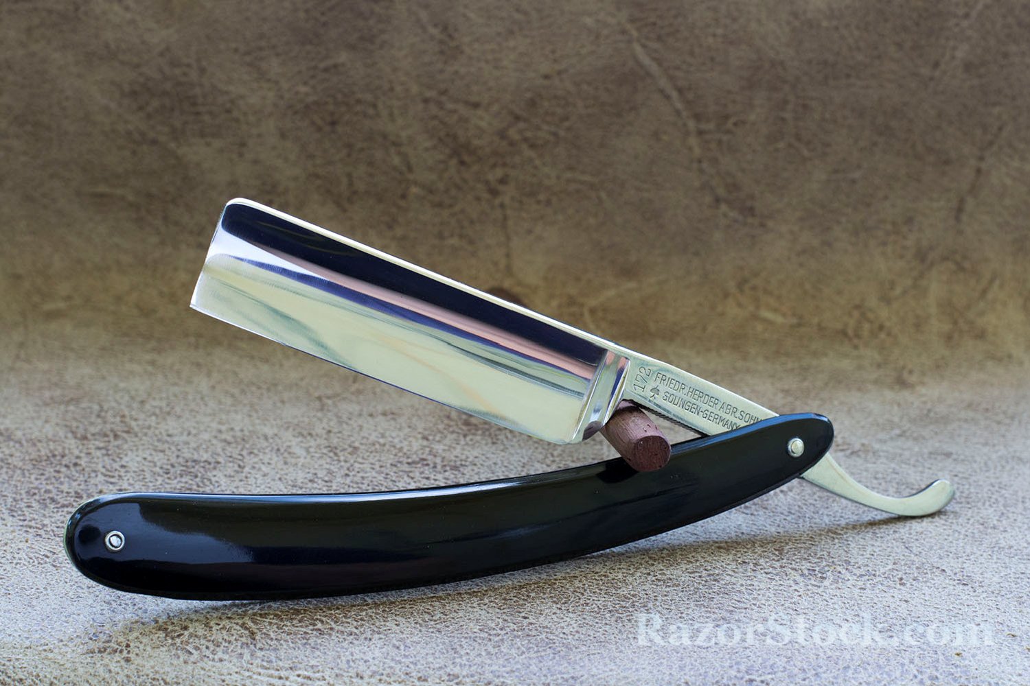 Немецкая опасная бритва из города Золинген, одной из самых знаменитых марок и известнейших фабрик. История ее создания восходит к первой половине 17 века. Данная модель Friedr Herder 112 изготовлена в первой половине 20 века, скорее всего до второй мировой войны. Находится в отличном состоянии и никогда не использовалась, несколько мелких пятен находятся минимум в 0.7 мм от режущей кромки и не несут какой либо угрозы. Удобная форма полотна. ширина 6/8, эбонитовая рукоять. Бритва заточена и подготовлена к бритью, идеальная геометрия, тонкая и равномерная фаска. Отличный выбор как для новичка, так и для искушенного пользователя. Продано Herder Show