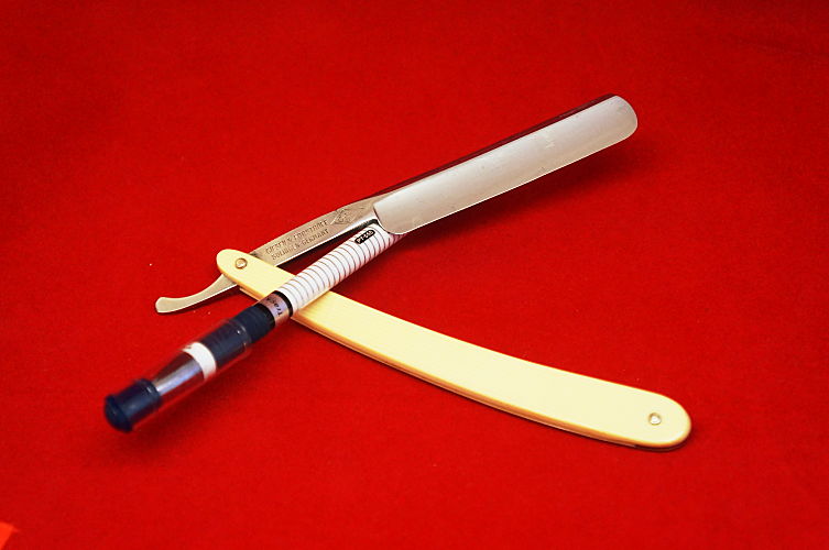 Spoiler Show Продам: бритва POPULAR 10 Jahre Garantie, 4/8, заточена, готова к бритью, на полотне небольшие следы времени, на работу не влияющие. Удобный размер для окантовки бороды, бритья в труднодоступном месте. Да и для всего остального бритья. Продезинфицирована. Футляр неродной. Цена: Продано с доставкой. Spoiler Show Продам: бритва "УЗКАЯ", завод СТИЗ, 1957 год рождения, 3/8, заточена и готова к работе. Красивая ручка. Практически не использовалась, может быть раза три. Очень удобно для выбривания в труднодоступных местах. Бреет отлично. Продезинфицирована. Тест на волос почти беззвучен, просто неслышно распадается волос. Футляр в комплекте неродной. Продано. Spoiler Show Продам близнецов: Friodur Henckels Zwillingswerk 472, сталь INOX, 5/8, ручка пластик, новая, пины - латунь, клин - пластик. По всей длине обушка - гравировка. Заточена и готова к работе. Бреет шикарно. Продезинфицирована. Продано. Spoiler Show
