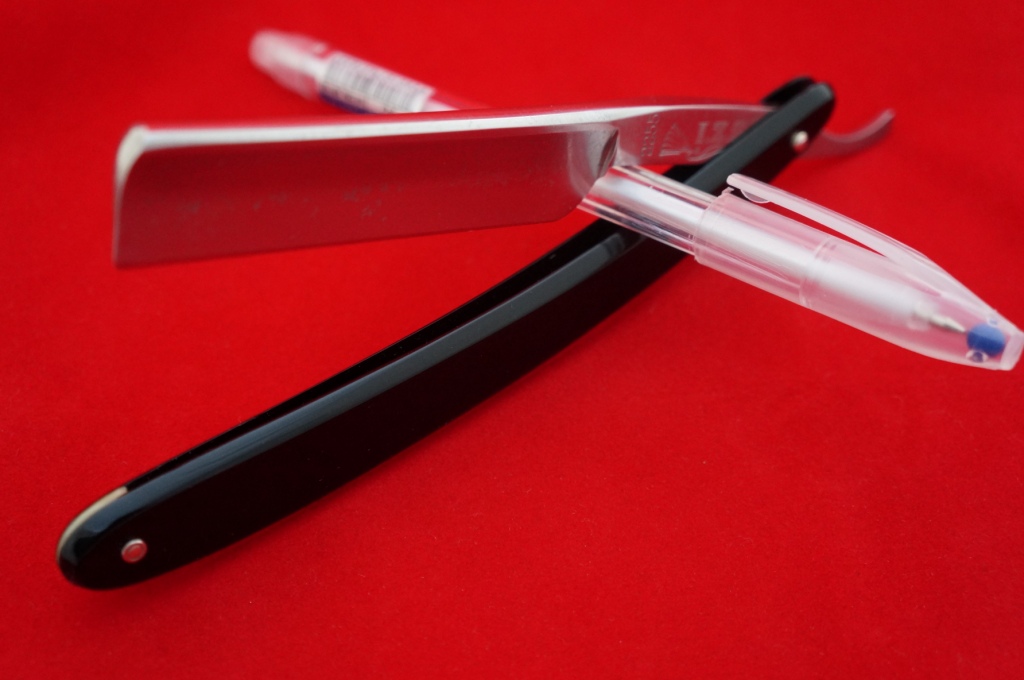 Spoiler Show Продам: бритва POPULAR 10 Jahre Garantie, 4/8, заточена, готова к бритью, на полотне небольшие следы времени, на работу не влияющие. Удобный размер для окантовки бороды, бритья в труднодоступном месте. Да и для всего остального бритья. Продезинфицирована. Футляр неродной. Цена: Продано с доставкой. Spoiler Show Продам: бритва "УЗКАЯ", завод СТИЗ, 1957 год рождения, 3/8, заточена и готова к работе. Красивая ручка. Практически не использовалась, может быть раза три. Очень удобно для выбривания в труднодоступных местах. Бреет отлично. Продезинфицирована. Тест на волос почти беззвучен, просто неслышно распадается волос. Футляр в комплекте неродной. Продано. Spoiler Show Продам близнецов: Friodur Henckels Zwillingswerk 472, сталь INOX, 5/8, ручка пластик, новая, пины - латунь, клин - пластик. По всей длине обушка - гравировка. Заточена и готова к работе. Бреет шикарно. Продезинфицирована. Продано. Spoiler Show