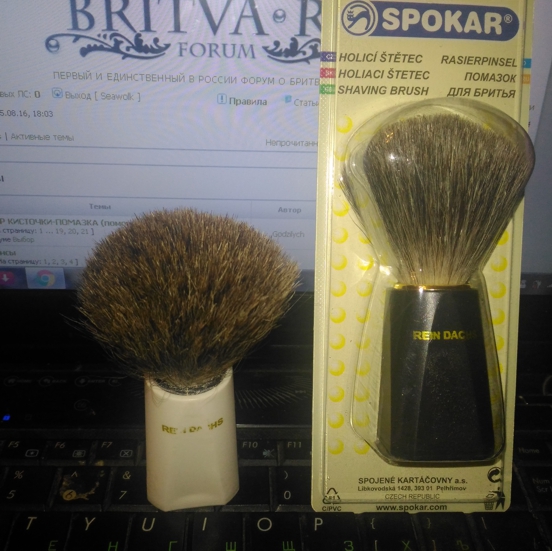 Re: ВЫБОР КИСТОЧКИ-ПОМАЗКА (помощь и консультация)На фото покрупнее не опознать? барсук - не барсук Show В чашке: с кремом Арко, кремом Знахарь, самодельным мылом из мыла Dove - все более менее. Старый жесткий помазок взбивает быстрее и больше, барсук медленнее и расходует мыла больше. А вот с немецким Malabar в чашке вообще не получилось. На лице: все терпимо, но хотелось бы помазок пожёстче. С немецким - терпимо (кроме того что в чашке пена всегда теплая, а на помазке, на второй проход и подбривание проблемных мест - неприятно холодная)