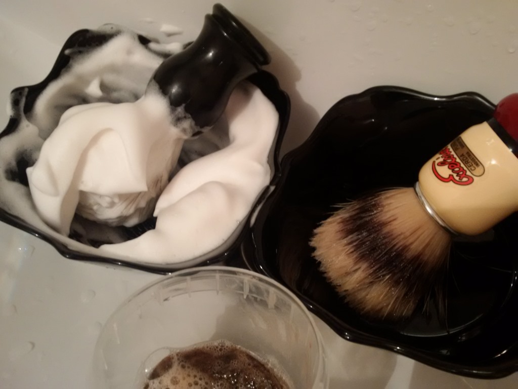 Опять я со своими помазками... Добрый день, друзья Вторую неделю мучаюсь с вновьприобретенным помазком Севог - кабанчик. Тут уже обсуждались мои неудачи с китайским барсуком, обзывали его собакой, советовали купить фирменное мыло и крутой фирменный помазок и не компостировать мозги форумчанам. Суть проблемы: ни китайский барсук (может подделка, не спорю), ни фирменный кабан не дает нормальную пену. По крайней мере по сравнению с дешманским синтетическим помазком нонейм за 65руб. из ближайшего хозяйственного магазина. В целом, если использовать крем Знахарь или крем Арко в тюбике и наводить пену сразу на лице, то пена получается. Очень сложно, далеко не идеальная, остывает на помазке в середине бритья, не стойкая, но худо-бедно (например в командировке без скаттла, взбиватя перед вторым проходом заново) бриться можно. Но с пеной взбитой в скаттле помазком за 65р. – не сравнить. Скаттл в командировку не потащишь. Перфекционизм рождает зуд в руках. Хочу, что бы кабаном получалась пена как на лице, так и в чашке. Подозреваю, что что-то делаю не правильно. Народ ведь бреется и кабанами и барсуками, всем доволен. Решил сделалать фото Show Видео снять не удалось, сделал фотки. Итак, вводные: 1. Помазок синтетика неизвестного китайского производителя. Очень жесткий, на лице им взбивать пену очень больно. Прошу обратить внимание, что синтетики от многих брендов (Омега например) значительно мягче и про них речь не идет. 2. Помазок Португалия кабан бренда Севог, модель не помню, но если надо найду. В меру мягкий на лице, как раз то, что мне надо. Не воняет, не лезет. Интересен, тем, что им можно дополнительно делать массаж щетины уже на лице. 3. Мыло Malabar для бритья. Я отчитывался, что часть его немного модифицировал (+глицерин и чуть геля для бритья Нивеа) http://britva.ru/forum/viewtopic.php?p=158346#p158346 4. . В этом тесте – остатки мыла, в первозданном виде. К слову, в модифицированном мной мыле пена более стойкая, долго работает на лице, не сохнет. Но объем создаваемой пены для модернизированного и обычного мыла Malabar – одинаков. В конце теста применялось самодельное мыло, которое выдала жена, английская основа, какие-то добавки. Могу уточнить, но, имхо, не суть. Помазки замочил, миски взял одинаковые на кухне, что бы условия были похожие. Мыло Malabar чуть намочил. Набрал на синтетический помазок, как обычно, совсем немного, просто потыкал помазком в мыло. Взбил пену, минуту, даже меньше. Пена получилась как обычно. Все хорошо, но хочется использовать кабанчика, а старый стремный и жесткий помазок отправить в помойку. Намазюкал кабана на уже размоченном мыле. Уже зная, что набирать мыла на моего кабана нужно очень много – мусолил помазком по мыло очень долго, с запасом. Для эксперимента, конечно, не хорошо, условия немного не одинаковые, объем набранного мыла на кабане намного больше. Но если на синтетику набрать столько мыла, сколько набрал на кабана, то синтетика выдаст пены с литровую миску. на фото кажется, что мыла не много, но реально в помазке просто немеряно мыла. Намного больше чем во всяких обучающих видео и фото в интернете. Пена получается куцая, вся внутри помазка, взбиваю секунд 30 После 30 секунд она просто разваливается. ЕЕ просто нет, вода. И в чашке и в помазке. Почем это происходит? Уже и больше и меньше воды набирал в помазок. Суше помазок – пена в принципе не взбивается, больше – п