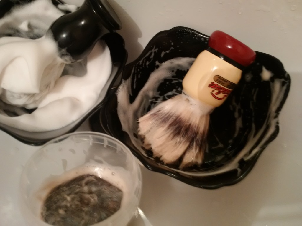 Опять я со своими помазками... Добрый день, друзья Вторую неделю мучаюсь с вновьприобретенным помазком Севог - кабанчик. Тут уже обсуждались мои неудачи с китайским барсуком, обзывали его собакой, советовали купить фирменное мыло и крутой фирменный помазок и не компостировать мозги форумчанам. Суть проблемы: ни китайский барсук (может подделка, не спорю), ни фирменный кабан не дает нормальную пену. По крайней мере по сравнению с дешманским синтетическим помазком нонейм за 65руб. из ближайшего хозяйственного магазина. В целом, если использовать крем Знахарь или крем Арко в тюбике и наводить пену сразу на лице, то пена получается. Очень сложно, далеко не идеальная, остывает на помазке в середине бритья, не стойкая, но худо-бедно (например в командировке без скаттла, взбиватя перед вторым проходом заново) бриться можно. Но с пеной взбитой в скаттле помазком за 65р. – не сравнить. Скаттл в командировку не потащишь. Перфекционизм рождает зуд в руках. Хочу, что бы кабаном получалась пена как на лице, так и в чашке. Подозреваю, что что-то делаю не правильно. Народ ведь бреется и кабанами и барсуками, всем доволен. Решил сделалать фото Show Видео снять не удалось, сделал фотки. Итак, вводные: 1. Помазок синтетика неизвестного китайского производителя. Очень жесткий, на лице им взбивать пену очень больно. Прошу обратить внимание, что синтетики от многих брендов (Омега например) значительно мягче и про них речь не идет. 2. Помазок Португалия кабан бренда Севог, модель не помню, но если надо найду. В меру мягкий на лице, как раз то, что мне надо. Не воняет, не лезет. Интересен, тем, что им можно дополнительно делать массаж щетины уже на лице. 3. Мыло Malabar для бритья. Я отчитывался, что часть его немного модифицировал (+глицерин и чуть геля для бритья Нивеа) http://britva.ru/forum/viewtopic.php?p=158346#p158346 4. . В этом тесте – остатки мыла, в первозданном виде. К слову, в модифицированном мной мыле пена более стойкая, долго работает на лице, не сохнет. Но объем создаваемой пены для модернизированного и обычного мыла Malabar – одинаков. В конце теста применялось самодельное мыло, которое выдала жена, английская основа, какие-то добавки. Могу уточнить, но, имхо, не суть. Помазки замочил, миски взял одинаковые на кухне, что бы условия были похожие. Мыло Malabar чуть намочил. Набрал на синтетический помазок, как обычно, совсем немного, просто потыкал помазком в мыло. Взбил пену, минуту, даже меньше. Пена получилась как обычно. Все хорошо, но хочется использовать кабанчика, а старый стремный и жесткий помазок отправить в помойку. Намазюкал кабана на уже размоченном мыле. Уже зная, что набирать мыла на моего кабана нужно очень много – мусолил помазком по мыло очень долго, с запасом. Для эксперимента, конечно, не хорошо, условия немного не одинаковые, объем набранного мыла на кабане намного больше. Но если на синтетику набрать столько мыла, сколько набрал на кабана, то синтетика выдаст пены с литровую миску. на фото кажется, что мыла не много, но реально в помазке просто немеряно мыла. Намного больше чем во всяких обучающих видео и фото в интернете. Пена получается куцая, вся внутри помазка, взбиваю секунд 30 После 30 секунд она просто разваливается. ЕЕ просто нет, вода. И в чашке и в помазке. Почем это происходит? Уже и больше и меньше воды набирал в помазок. Суше помазок – пена в принципе не взбивается, больше – п