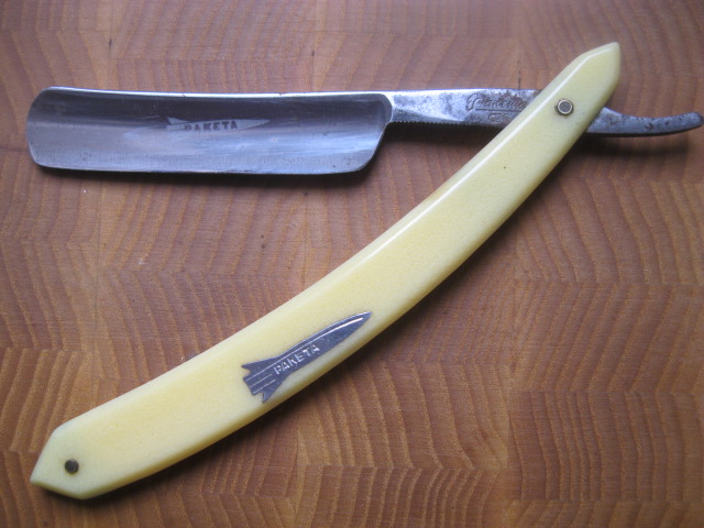 Уточили, причём по-варварски: бритва, судя по обуху, была улыбчивой, а режущая кромка уже прямая. Хотя... не разобрал, какой там год указан — 54-й, что ли? улыбчивых бритв тех времён что-то не припоминаю.