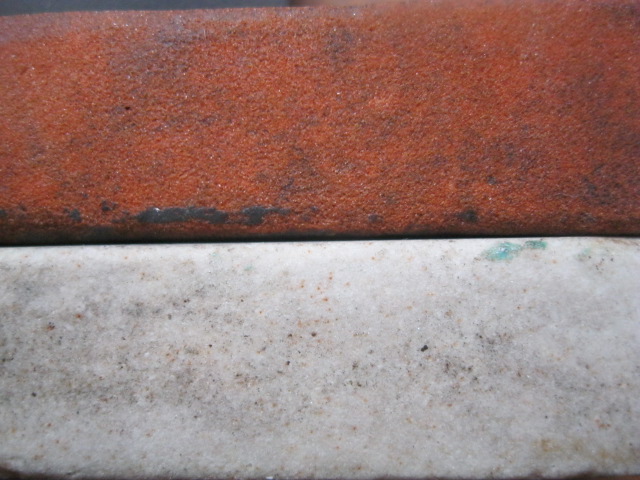 Re: Помогите определить каменьСудя по голубой полосе параллельно линии сращивания с BBW это La Petite Blanche. Может быть мягковат, приноровиться надо. Может выбиваться суспензия от трения бритвы о камень при заточке, если так для финиша надо работать под проточной водой. У меня свой как раз la dressant похоже, так вот приклеенный к нему BBW как раз работает тоньше самогО желтого бельгийца.