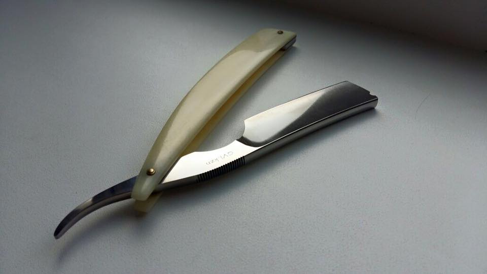 Бритва 7/8 Клинок - Uddeholm Arne ручка - верблюжья кость (что-то прессованное), легко обрабатывается, полируется. Брал на пробу у Boris клинышек - латунь, белый акрил Пины - серебро. Одним ударом дерева не срубишь. . Татарская поговорка