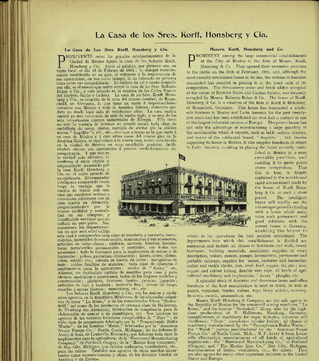 Добавлено спустя 2 минуты 45 секунд: Нормально сохранившаяся - то она для того, кто сможет её отреставрировать. Поэтому - то и "зачем оно тебе?" Re: Korff&Honsberg remscheid,Solingen(вольный и сокращенный перевод) Spoiler Show Фирма Korff & Honsberg основана в городе Ремшайд, Германия. В течение последних двадцати пяти лет она занимается оптовой торговлей в Мексике и Латинской Америке. Korff, Honsberg & Co. не только производит большое количество товаров, которые они экспортируют, таких как столовые приборы, ножницы и бритвы знаменитого бренда " Angelito ” но и являются торговым агентом многих крупных фирм США и Европы, таких как “ La Reina” (швейные машинки), “Berkefield” (фильтры) и многих других. На прилавках вы также можете найти все классы оборудования и инструментов, тяжелого оборудования, строительных материалов, котлов, двигателей, насосов, локомотивов, все виды сельскохозяйственных машин и орудий. На складе хранится великолепная австрийская и американская домашняя и офисная мебель лучшего производства, а также краски, лаки, сундуки, вали, игрушки, галантерейные изделия, ртуть, огнестрельное оружие, мечи, боеприпасы и др. Помимо поставок в свой магазин в Мехико, Korff, Honsberg & Co. также поставляет в сотни других по всей Латинской Америке. Вот сам магазин и реклама из мексиканских газет того времени Spoiler Show Бритва с двумя ангелочками: А павлин найден в Аргентинском патентном журнале за 1941 год: Ну, и в свете открывшихся обстоятельств, опознана еще одна бритва на нашем форуме, Adelante: http://britva.ru/forum/viewtopic.php?p=32163#p32163" onclick="window.open(this.href);return false; В настоящее время фирма юридически существует, регистрация торгового знака с ангелом продлена до 2023 года, но последние следы коммерческой деятельности замечены в начале 2000х годов.