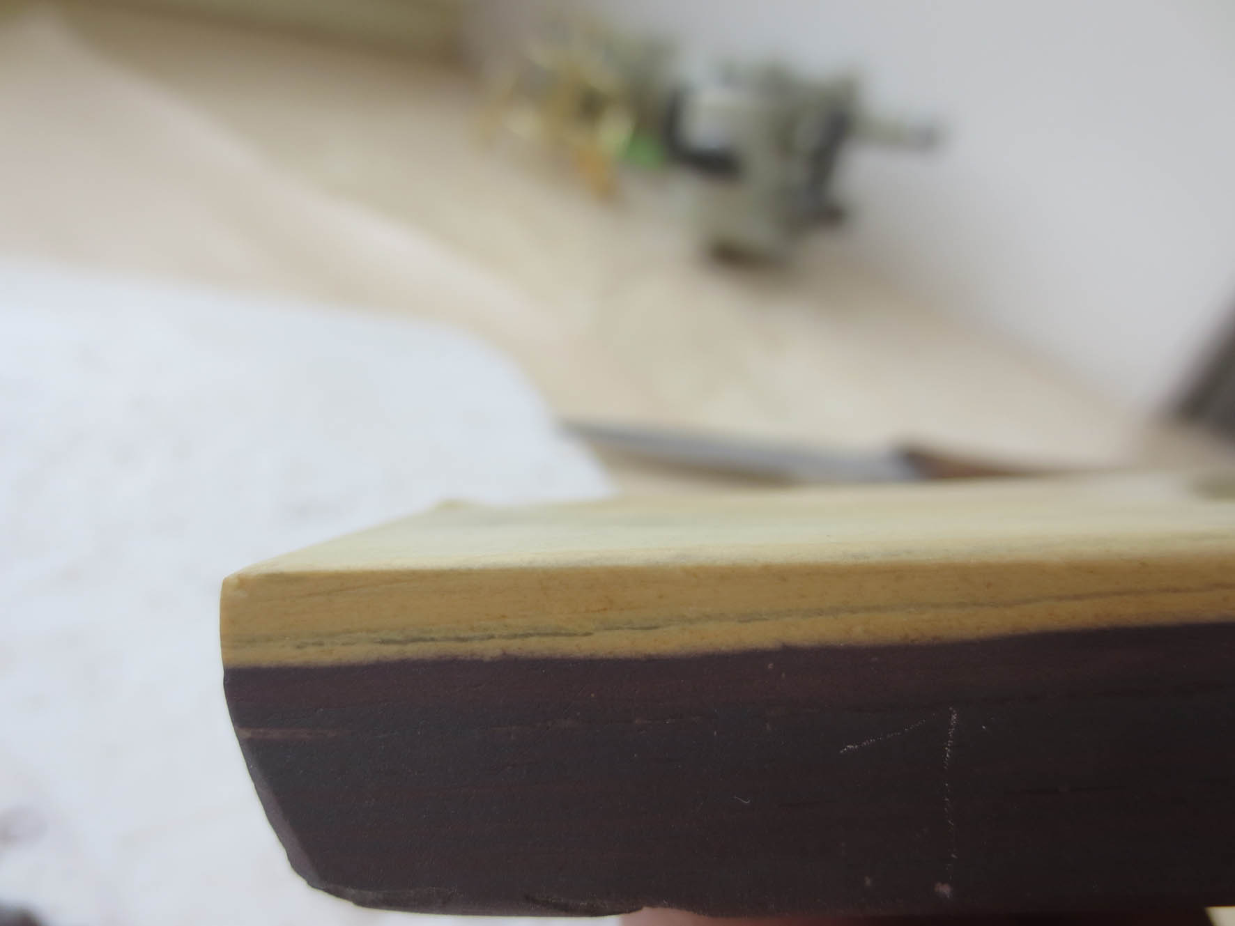 Re: Помогите определить каменьСудя по голубой полосе параллельно линии сращивания с BBW это La Petite Blanche. Может быть мягковат, приноровиться надо. Может выбиваться суспензия от трения бритвы о камень при заточке, если так для финиша надо работать под проточной водой. У меня свой как раз la dressant похоже, так вот приклеенный к нему BBW как раз работает тоньше самогО желтого бельгийца.