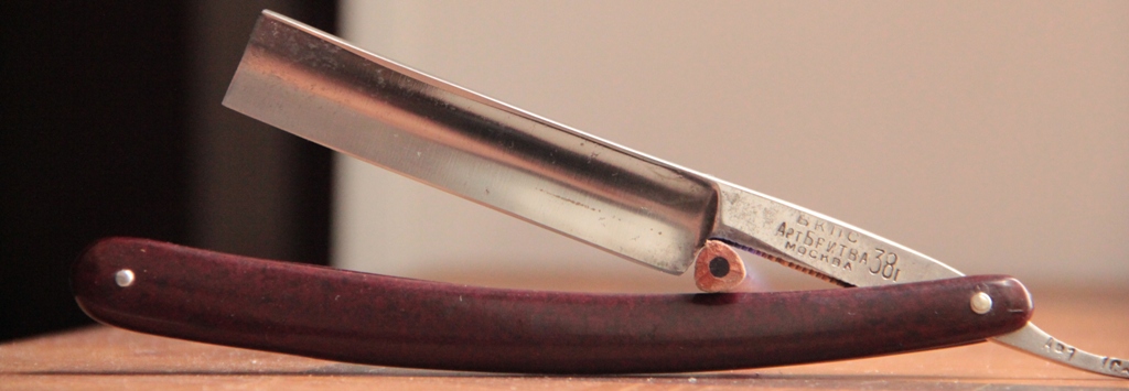 Бритва не разбиралась и не ремонтировалась. Немного освежил металл от патины и всё.Сталь и кромка чистые, без рытвин, коррозии и прочих дефектов. Кромочка идеально ровная, что говорит о качественной работе изготовления бритвы. Бритва средней весовой категории. Особенно рекомендовал бы такую бритву новичку, как достаточно удобную для обучения. За счёт своего короткого полотна и длинного эрля, бритву удобно держать и проходить самые проблемные и труднодоступные места. Для опытных пользователей это не имеет большого значения, а вот для новичка самое то, что нужно.