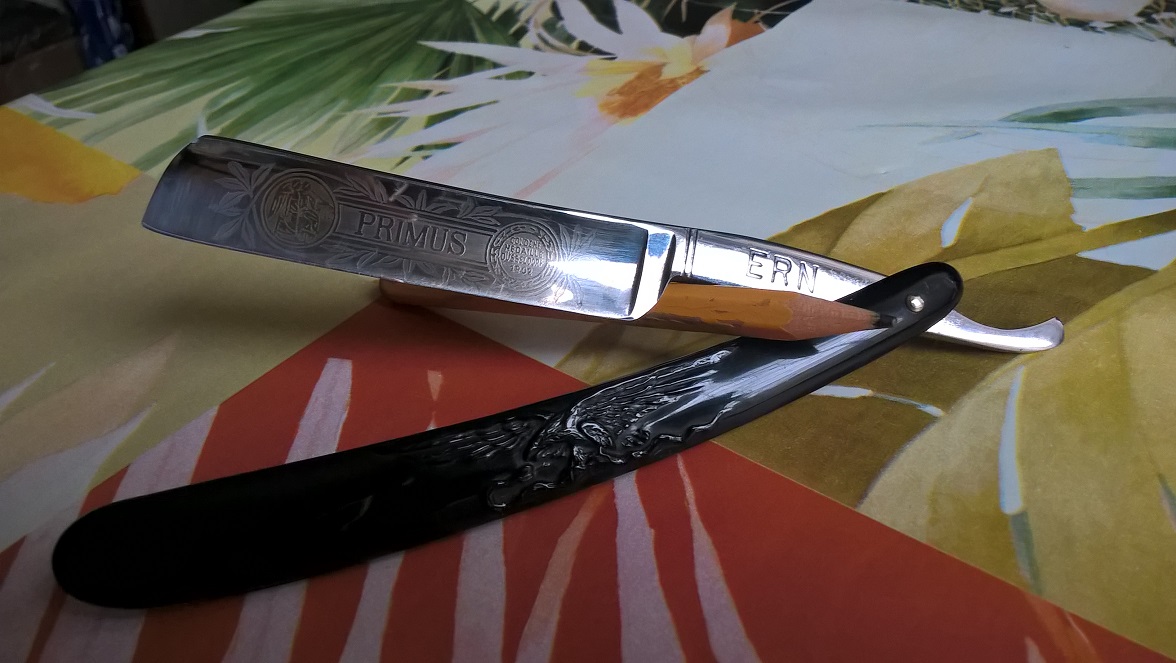 Итак, после заточки Андреем- первой я опробовал бритву ERN Primus Wald-Solingen, брился ею сразу, без правки на ремне (было очень интересно как бритва будет себя вести после рук мастера), щетинка была трехдневной (знаю, что такую легче брить; кстати, я как-то и четырехдневную подсевшей бритвой сразу против волоса в один проход брил, и надо сказать выходило на ура). Возвращаюсь к ERNу, решил в два прохода попробовать, чтобы понять: будет раздражение или нет. Начал бриться и у меня в голове появились две мысли: 1) «зачем мне англичанина пробовать» и вторая: 2) «подольше бы такая заточка продержалась на бритве». В тот момент я понял людей, которые пользуются одной-двумя бритвами, и им хватает, а тех, которые используют большее количество бритв, - мне всегда понять было гораздо проще. В общем, радости не было предела. Побрился очень чисто. Покраснений на коже не было. Сравнивать не с чем, кроме как с Т-станком которым я брился с 12 лет. Но по мне Т-станок и близко не стоял с клинковой бритвой.