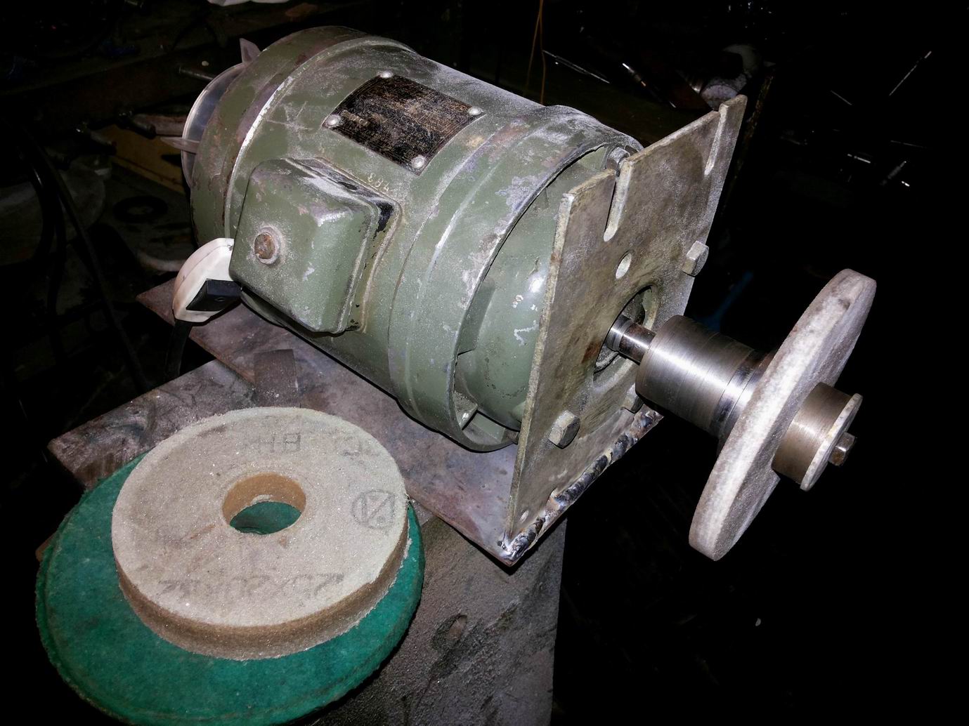 Re: Бритва до... и после...По вопросам работы отвечу тут и всем кому интересно , каждому рассказывать надоело . Никаких секретов , гриндеров , и хитрых приспособлений . Сгорела моя рабочая лошадка (точило ) , ожидает нового якоря - это присказка . Нашёл в закромах однофазный двигатель 180 ватт от старой стиральной машины , за минут 40 сделал ему из чего-попало под руку посадочное место и выточил переходной фланец для камней .