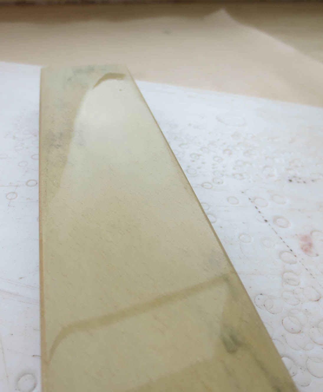 Re: Помогите определить каменьСудя по голубой полосе параллельно линии сращивания с BBW это La Petite Blanche. Может быть мягковат, приноровиться надо. Может выбиваться суспензия от трения бритвы о камень при заточке, если так для финиша надо работать под проточной водой. У меня свой как раз la dressant похоже, так вот приклеенный к нему BBW как раз работает тоньше самогО желтого бельгийца.
