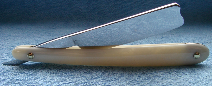 Re: Ручка (оправа) бритвы - изготовление/ремонтВот ещё примерчик использования/сочетания современных материалов ручки, правда для старого француза. Но это Элфорин - современный заменитель/имитатор слоновой кости, сейчас идет на бильярдные шары и накладки клавиш для фоно.