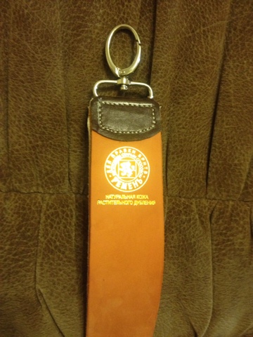 Захотелось сделать себе широкий ремень. Попросил Максима, (aka Моня), выслать кожу для бритвенного ремня. Рекламировать Моню смысла нет. Человек очень известный и уважаемый в своем деле. И. один из немногих, превосходный и очень добросовестный продавец. Испытано не раз, и не только мной  Он выслал мне ременную заготовку длиной 75, шириной 7,5 см., толшина - около 4,5 мм., а также D-кольца 2,5 дюймовые, которые хрен где найдешь и пару кусков кожи для обвязки и ручки. Ручку из кожи делать не стал, поставил полукольцо. К верхнему креплению пристегнул карабин. Сначала решил наждачкой не трогать, попробовал править - что то не устроило. Шлифанул чуток 1500 (3М) наждачкой. Заработал по другому. Короче, качество кожи превосходное, работает отлично, дешевле Канаямы в 5-7 раз  И. да, все таки на широком ремне править лучше безулыбчатую бритву. Слава богу, их есть