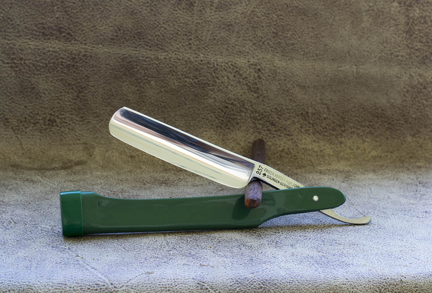 Немецкая опасная бритва из города Золинген (Solingen), одной из самых знаменитых марок и известнейших фабрик. История ее создания восходит к первой половине 17 века. Данная модель Friedr Herder 257 изготовлена в первой половине 20 века, скорее всего до второй мировой войны. Находится в отличном состоянии и никогда не использовалась. Ширина 5/8, пластиковая рукоять в походном исполнении. Бритва заточена и подготовлена к бритью, идеальная геометрия, тонкая и равномерная фаска. Отличный выбор для командировочной бритвы, рукоять хоть и выглядит массивной, но не является тяжелой, не доставляет какого либо дискомфорта по сравнению с бритвами с традиционной формой рукояти, поэтому не вижу каких либо противопоказаний или минусов при повседневном использовании. Продано. Spoiler Show