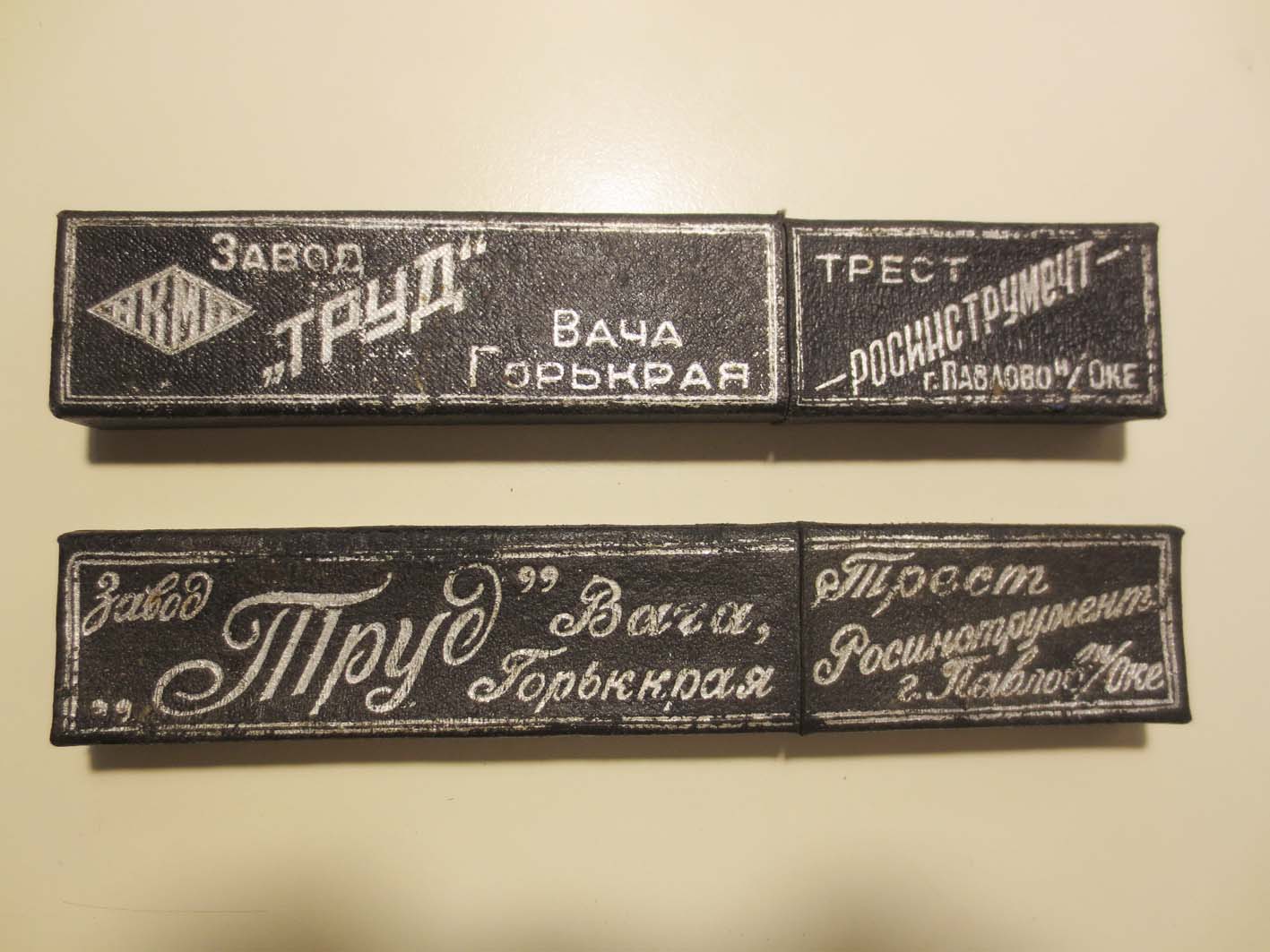 Дальнейшую историю завода "Труд" мы намеренно опускаем, так как производство опасных бритв после 1968 года было прекращено.