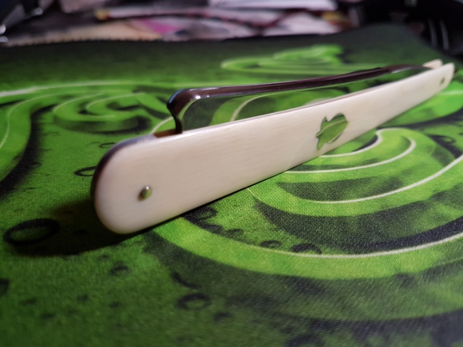 Искомый мной очень давно - Рог Изобилия от Wade&Butcher Новая оправа из кости верблюда, новые шайбы бычий глаз. Детальность травления просто поразительна, взглядом можно вычленить желуди, колоски, грозди и соцветия. На мой взгляд - лучший и самый позитивный мотив для травления, встречающийся на старых бритвах Spoiler Show Re: Ручка (оправа) бритвы - изготовление/ремонтЗачетный Butcher...!!!
