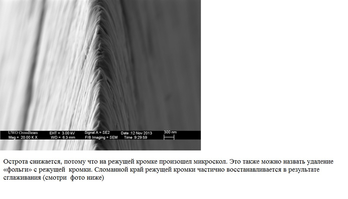 Re: Обострение на чистом ремнеВот именно, товарисч, хватит ПЫТАТЬСЯ теоретизировать, ибо обострение бывает у шизофрении в межсезонье, а не у металла. Все давно уже выложено в сети - и макросъемка кромки на электронном микроскопе, и описание тех. процессов. Если в кратце, то при правке на стропе (независимо от ее материала) происходит выравнивание режущей кромки, ОБЛОМ фольги и заусенца, сглаживание рельефа после камней путем пластической деформации металла, т.е. фактически кромка после ремня имеет бОльший радиус скругления, нежели после камня, значит становится тупее. Но комфортнее для бритья.
