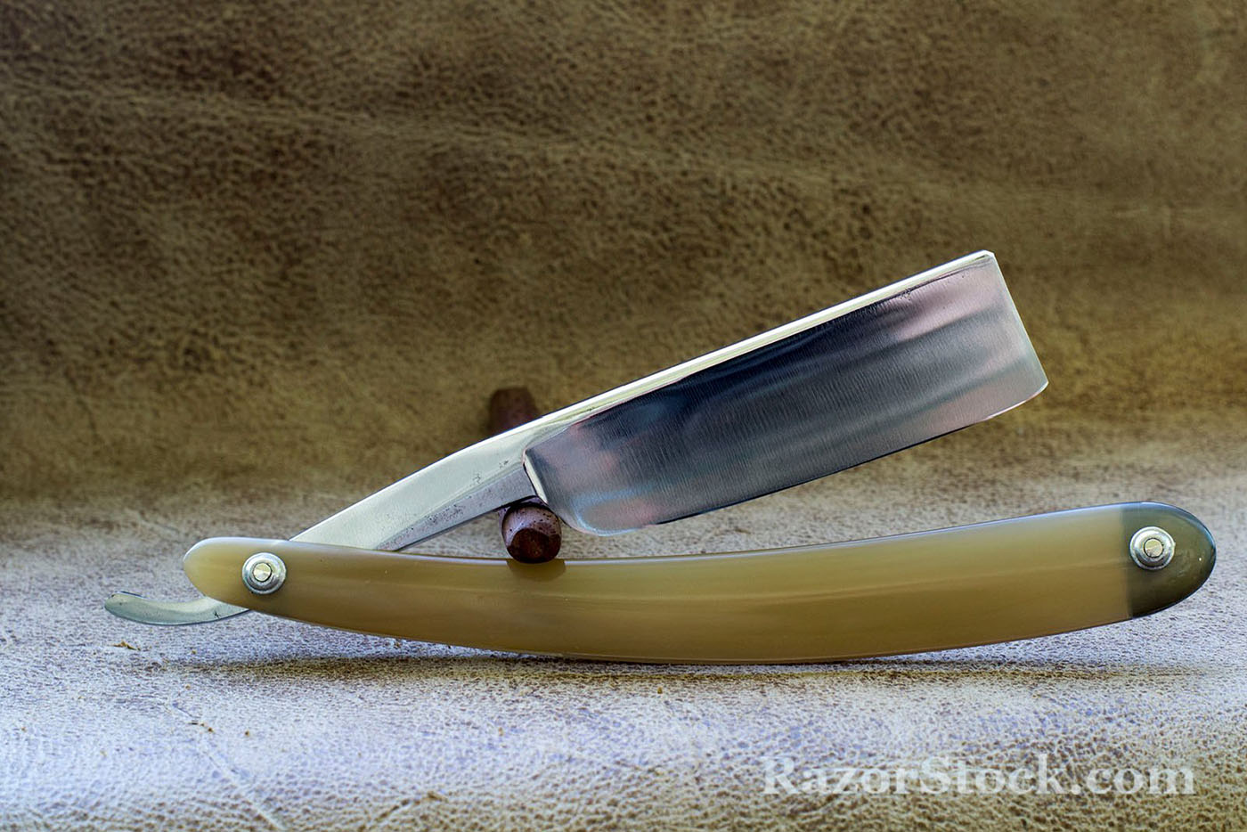 Английский Бенгалл времен Томаса Рэдли Кадмана. Рукоять из рога, протравленного под черепаху, родные латунные шайбы, ширина полотна 5/8 дюйма, полная вогнутость. Период изготовления конец 19 - начало 20 века. На обухе были незначительные следы от камня, я считаю это заводская заточка, так как кромка не была сведена и бриться с такой заточкой просто невозможно. Состояние полотна великолепное, виден заводской сатин, я просто слегка отполировал полотно и освежил рукоять, предварительно разобрав бритву. Бритва заточена и готова к бритью. Продано. Spoiler Show