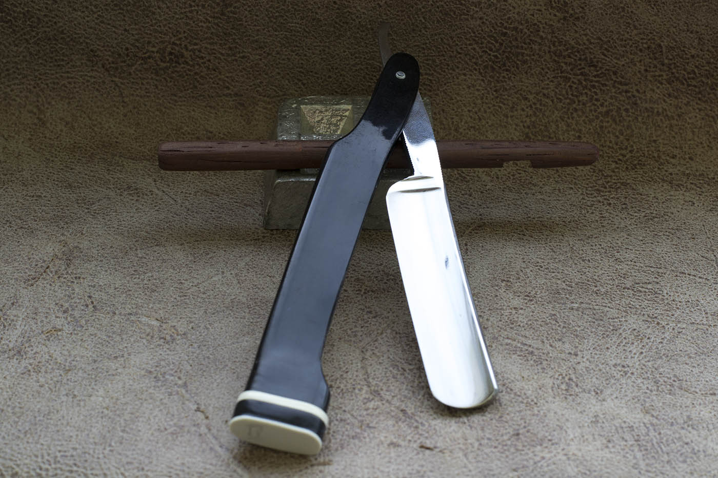 Опасная бритва конца 19 века из качественной углеродистой стали, производства Франции. На бритве не было найдено следов использования, тем не менее произведена реставрация с целью удаления незначительных следов времени. Родная рукоять была заменена на новую из кости верблюда. Ширина полотна 19.8 мм. Спинка 4.8 мм, вогнутость 3/4. Бритва заточена и готова к бритью. Отличный вариант как для новичка так и для продвинутого пользователя, желающего попробовать старую французскую бритву. Продано. Spoiler Show
