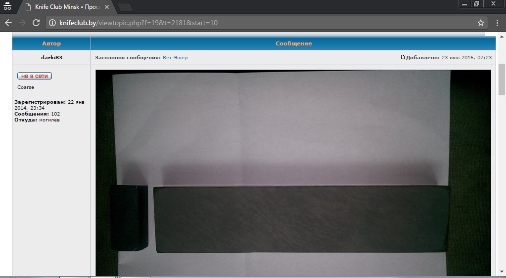 Будучи порядка 20-ти лет в браке и немного понимая психологию женщин, вот, хоть убейте, но не могу представить ни одной, которая, роясь у себя в гараже, находит некий камень и, как нормальная хозяйка, не выкидывает его в мусор, как ненужный хлам, а вдруг восклицает:-"Уау!! Это же тот самый Эшер, которым мой дед доводил свои бритвы!! Нифига себе!! Это же сколько он сейчас стоит? Редкий, небось.Наверное все бритво -маны за ним гоняются. Пойду-ка я спрошу на бритва.ру." Уверен, что 99,99% современных женщин не только не держали бритву в руках, но и не знают, что это такое. Моя благоверная, работая 10 лет стилистом-парикмахером в салоне, всегда с таким страхом берёт бритву в руки, когда я прошу подбрить мне шею. В их черепной коробке просто не может хранится информация о бритвах и каких то там тюрингских сланцах. Эт. точно. Поэтому... Думаю что здесь очередная попытка некого "продавца" сбагрить сей предмет всем желающим, надеющимся на халяву. "Продавец", видимо думает, что после такого безобидного поста с такими непрофессиональными фото, к нему повалятся предложения в личку о продаже. Не удивлюсь, если скоро этот камень появится на авито или ещё где. ТС не указал место своего прибывания. Если в этом городе есть товарищи, способные идентифицировать данный камень, то очень хорошо... А так, всё очень смешно смотрится.. Всё будет ХОРОШО...тел:+79065827134