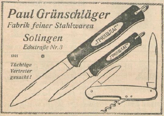 интересная надпись на русском - ГРИНШЛАГ. Не знаю, выпускала ли фирма Paul Grunschlager бритвы, но ради гриншлага, решил сохранить. Реклама из журнала Der Ost-Europa Markt за 1924 год. Журнал на русско-немецко языке (половина на русском, половина журнала на немецком), "Восточные рынки Европы", выходил в странах Балтии (на тот момент уже независимых) и в Финляндии. Стало быть надпись- реклама - для русскоязычных тех стран.