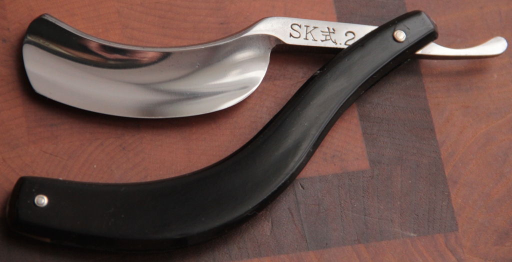 Конечно, меня интересовали в первую очередь только две модели:SK-1 и SK-2. SK-3 тоже прекрасна, но бритв подобной формы достаточно много и для меня она была не интересна в плане новых впечатлений. Внешний вид: Все три бритвы этой серии смотрятся необыкновенно и оригинально. Сказать, что бритвы красивы, это ничего не сказать. Они красивы, породисты. Чувствуется большой труд человека, вложившего в создание сего шедевра свою душу и всё свое умение. Как я понимаю, сталь на бритвах была шведская.Другой не видел.У меня их много уже было и в каком бы состоянии не находились бритвы., после небольшой чистки полотна, сталь опять приходила к своему первоначальному виду. Очень качественная сталь Особое внимание хотел отметить на идеальную геометрию изготовления.При такой, на мой взгляд, сложной форме при изготовлении полотна, кромочка всегда, на всех моих бритвах, была идеально ровненькая и еле заметная. Честно говоря, уточенных бритв не видел. Или люди действительно очень аккуратно ими пользовались, или просто их настолько мало, что не удалось увидеть бритвы в более неприглядном виде. Также красиво смотрится "ступенька" или ребро жёсткости на лезвии. Переход от выработки металла шлифовальными кругами разного диаметра.Ручка сделана из обычного пластика, часто используемом на всех японских бритвах. Сборка тоже качественная, без особых изъянов. Да, забыл сказать, что SK-1 отличается от SK-2 только размерами. При одинаковой форме 2 крупнее 1. Заточка. Тут, конечно, придётся повозиться. Не то, что точить трудно такую бритву(Что пишут многие на СРП), скорее эти бритвы не любят суету и спешку. За счёт своей формы лезвия, кромка бритвы не ложится всей длиной на поверхность камня и пятно контакта обрабатываемой поверхности совсем мизерное, что заставляет довольно долго и нужно обрабатывать каждый миллиметр. Особенно долгим кажется процесс, если использовать японский натурал с нагурами. Честно говоря, вначале меня сильно напрягло такое количество понраченного времени и сил. Но, с каждым разом, когда ко мне в руки попадала очередная сабля, я стал получать ни с чем не сравнимое удовольствие. Когда точишь , а затем доводишь долго и тщательно одну такую бритву, ты как бы медитируешь с ней и постепенно заряжаешься некой энергетикой. И , если не спешить с заточкой, то бритва реально отплатит в будущем комфортным и мягким бритьём. Теперь о бритье. Сначала бритва не оправдала моих ожиданий в плане бритья. Я думал, что за такие деньги, что она стоит, она должна сама брить тебя везде очень качественно и чисто. Но, немного не угадал. Первые попытки побриться комфортно ни к чему не привели. Вернее привели., но бритьё показалось несколько жёстким, хотя и без раздражения. К тому же, по неопытности, бритвой с таким изгибом лезвия бриться просто реально неудобно. Бритвы вынуждает тебя действовать косым резом, что не всем подходит и не все пользуются этим способом . Есть шанс порезаться. К тому же, количество сбриваемой щетины не слишком велико при одном проходе, опять таки, из за особенности лезвия. И, техника бритья , которой привыкли бриться, используя бритву с прямой кромкой,тут не подойдёт. Придётся, всё таки, несколько доворачивать бритву при бритье, тем самым получая косой рез. Но, со временем, поняв свои ошибки при заточке и тонкой доводке и сделав выводы из первых опытов бритья, с к