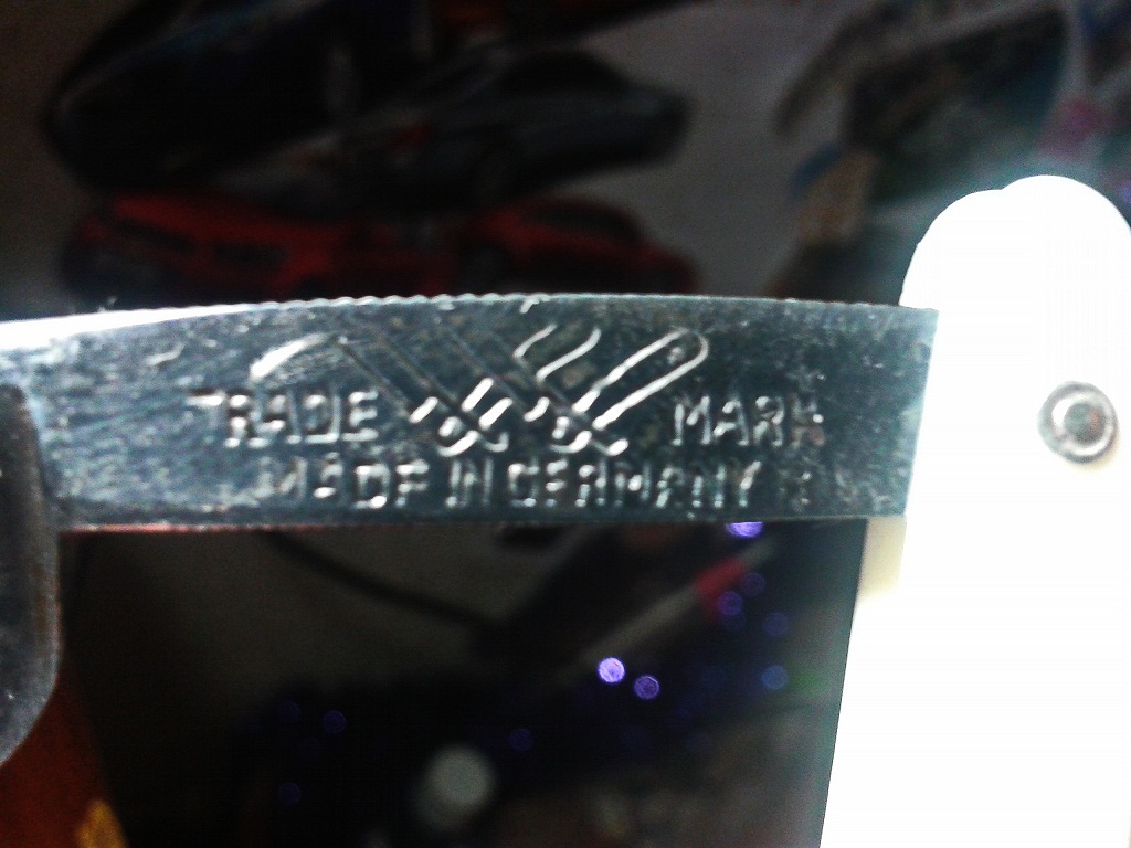 Помогите идентифицировать бритвуПопала в руки бритва с таким клеймом. В интернетах не смог найти инфы. Может быть, кто то сможет опознать клеймо. Две опасные бритвы сложенные в виде буквы W. Надпись TRADE MARK MADE IN GERMANY... Другая сторона эрла пустая.
