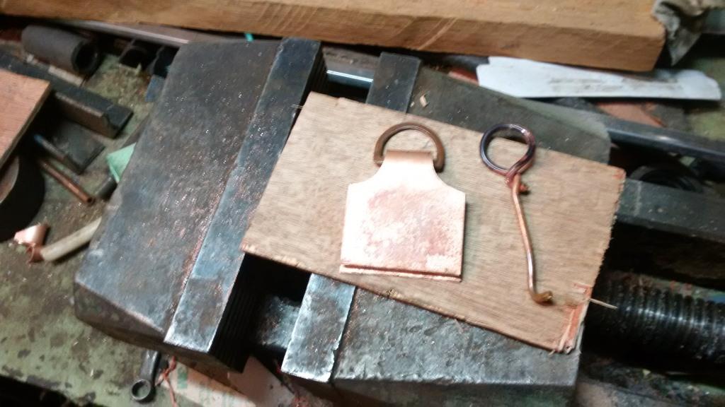 Для использования достаточно было шнурка в люверсе на верхнем конце ремня. Либо 2х полуколец. Пуссть даже и самодельных из латуни 3-4мм. Кстати, приложил полукольца - показались мелковатыми по сравнению с габаритами и фактурой ремня. Начинал делать подвес из медной пластины 1,5 (могу показать фото этих неудач), с отжигом, шлифовкой и т.п. Вот там была монументальность точно