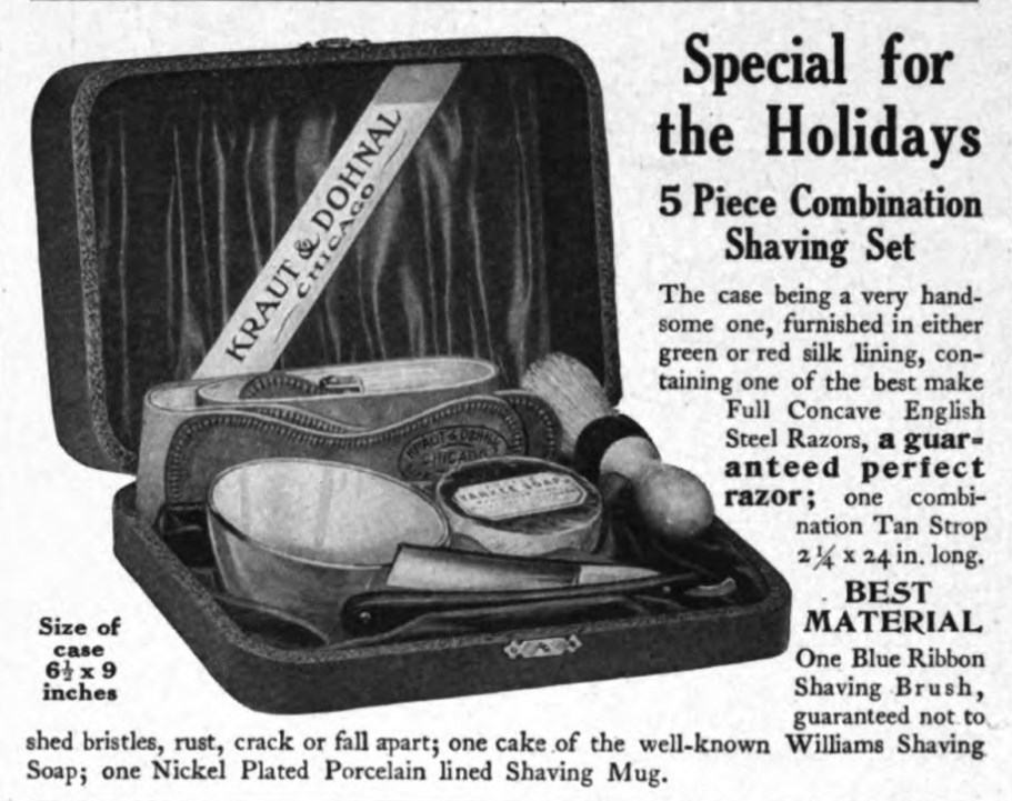 https://archive.org/stream/historicalen ... 0/mode/2up" onclick="window.open(this.href);return false; (Историческая энциклопедия памятных биографий Иллинойса 1929 год) рекламное объявление 1919 года: Kraut & Dohnal, ведущая фирма розничной торговли заявляет, что мы получили первую послевоенную партию немецких бритв. «Хотя, в Америке, есть сильные настроения против немецких товаров», говорит Otto Meisler, казначей фирмы, - «но мы верим, что это не коснется бритв немецкого производства. Наша цена от 4 до 6 долларов за качественные бритвы и люди расхватывают их. Но больше всего покупают парикмахерские. У нас есть и английские и немного французских бритв, но цена на них на 300 процентов выше, чем до войны.» Так же мы профессионально занимаемся гриндингом и восстановлением. Из за высоких цен, клиенты достают свои старые вещи, что бы восстановить. У нас есть восемь шлифовальных машин для ножниц и двадцать одна машина для остальных инструментов. Теперь в каждом нашем магазине есть работник, который занимается шлифовкой и восстановлением. Spoiler Show