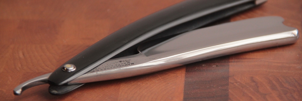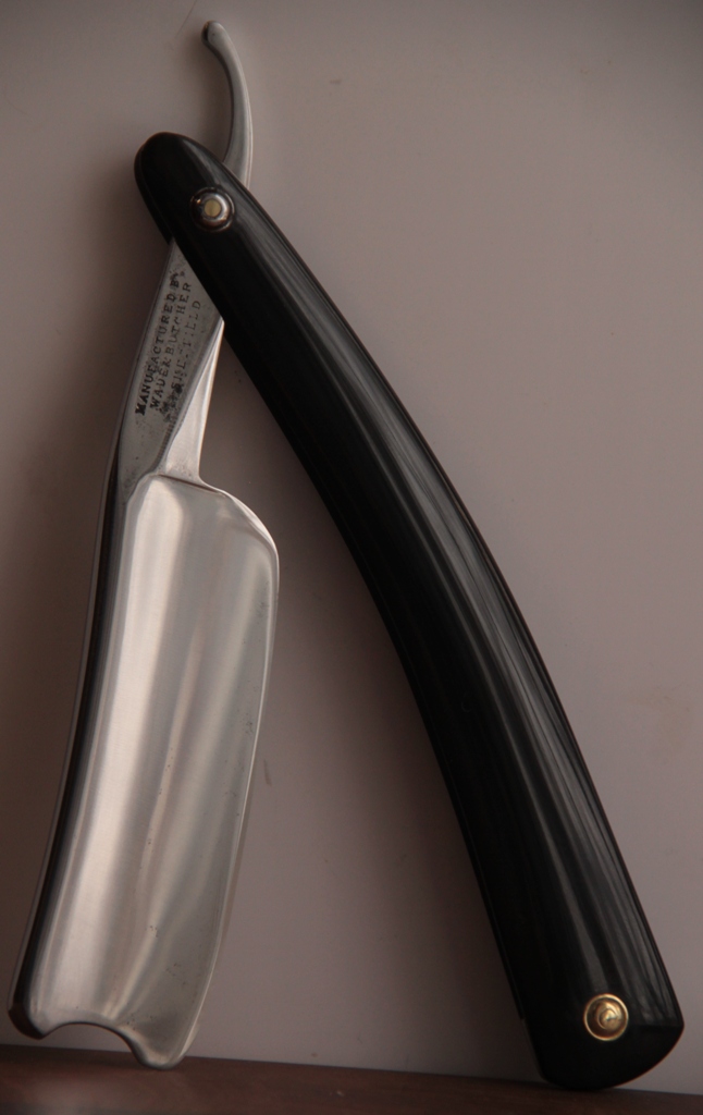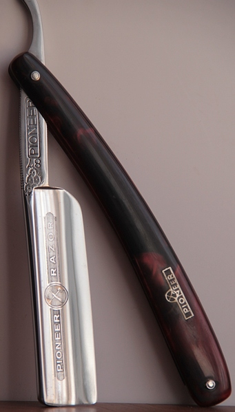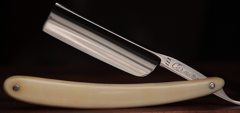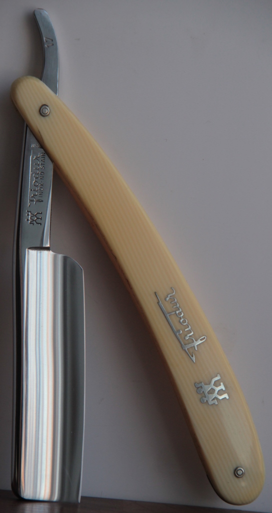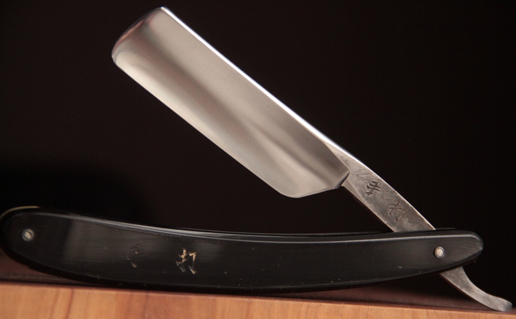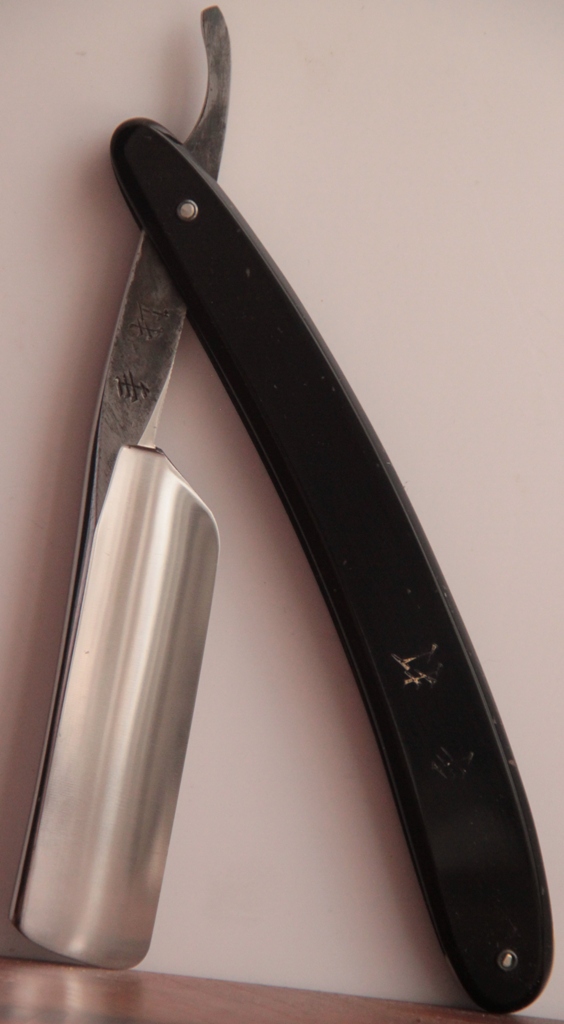 Совершенно нетронутая бритва ни временем, ни заточными камнями. Как по мне, так не только исключительная по красоте бритва, но также и отличный инструмент в опытных руках. Прекрасное, мягкое бритьё. Проверено не раз.