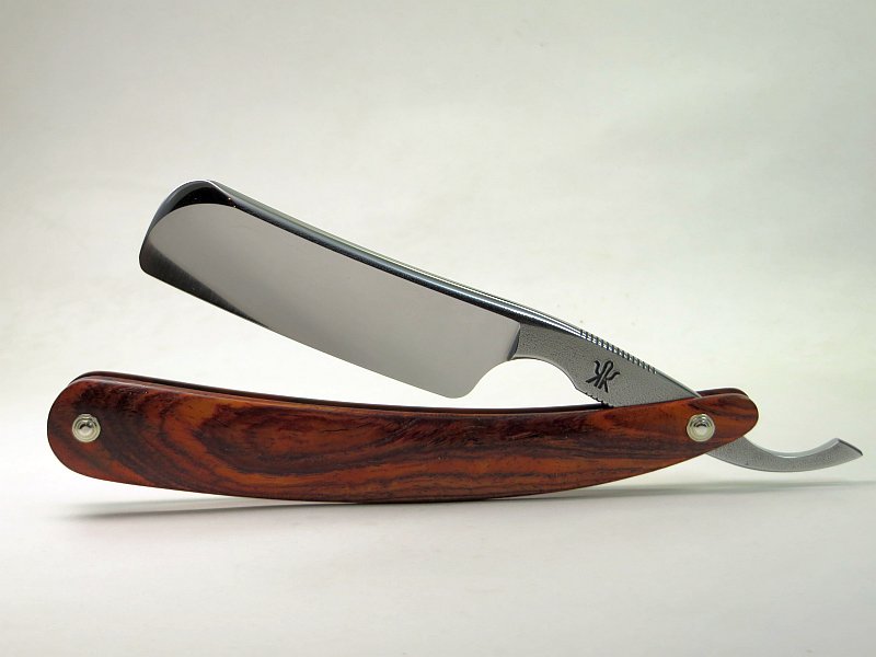 Он у меня был уже, фирменного знака нет, рукоять из рога буйвола. Не воняет, мягкий и нежный. Бритва Кораата- заказал себе еще одну из пустынного железного дерева рукоять, испанская голова, массивный шлиф. Харт стил и не тянет пробовать- шлиф у некоторых не нравится уже на картинке, грубый финиш, сталь как у Дово с 1 процентом угля- это О1 или 1.2510. Т.е. мою точить пореже надо будет. Можно из марочного напильника клинок заказать, но пока хватает того что есть. Через год можно будет дальше подумать- но если заточка хорошо держаться будет, то новых бритв брать не буду.
