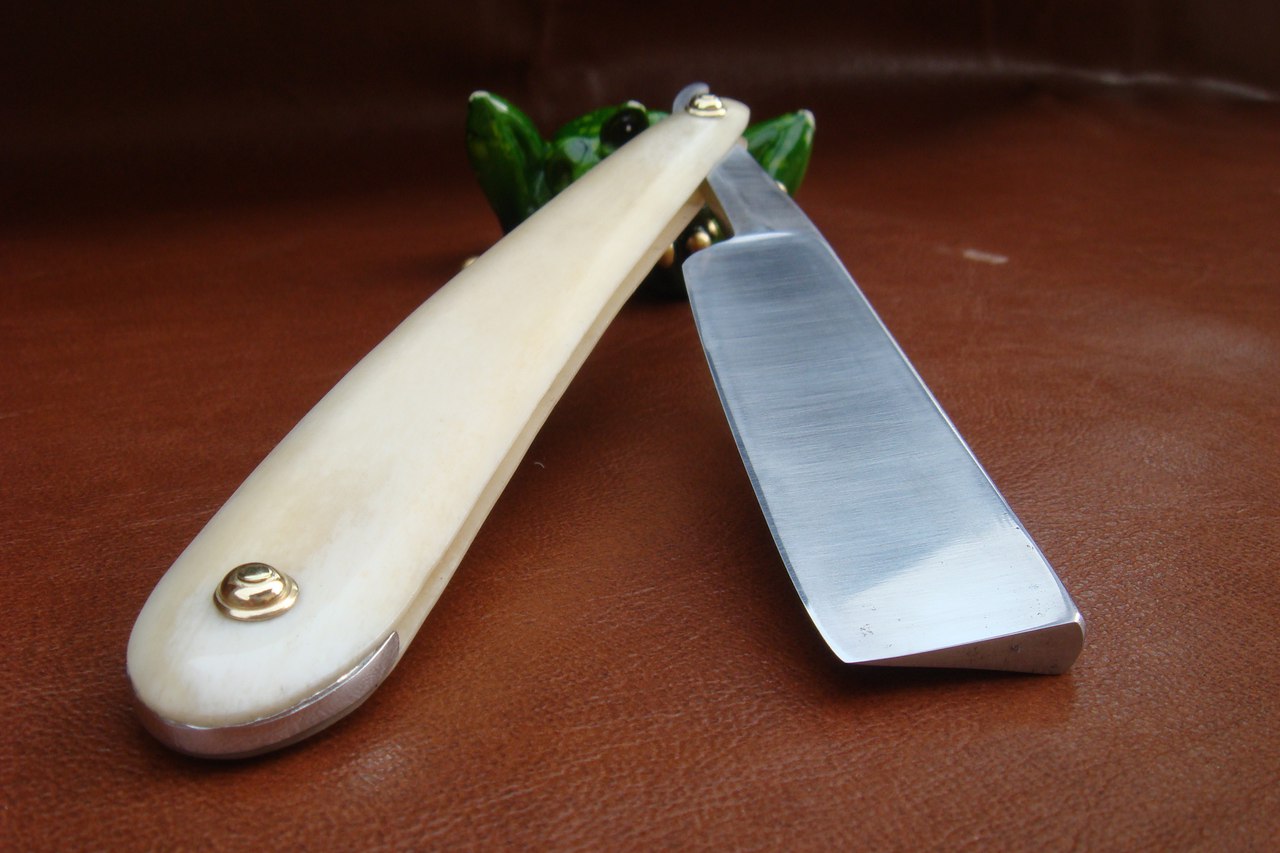 Опасная бритва от известнейшего производителя.Знаменитый "мясник" из Шеффилда. Ширина 22,5мм.Форма лезвия "клин".Заточена,готова к бритью.Последующие заточки(до 5 раз)-Бесплатно. Ручка-кость верблюда,клин-олово.Пины -латунь. Цена 19900.Доставка включена. Spoiler Show Spoiler Show Spoiler Show