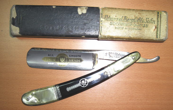 Мы в позапрошлом году возили в Золинген бритвы этой же фирмы. модель 44. Восстанавливал бритву сам хозяин то есть Bergfeld (или сын, точно не знаю), уже престарелый человек, пенсионер. Постараемся узнать историю фирмы у него. Фото прилагаю, она у нас стоит на прилавке, но не продаётся, это моя любимая бритва.