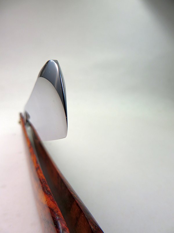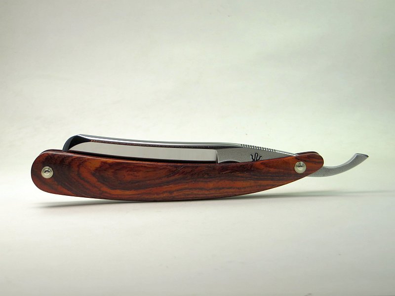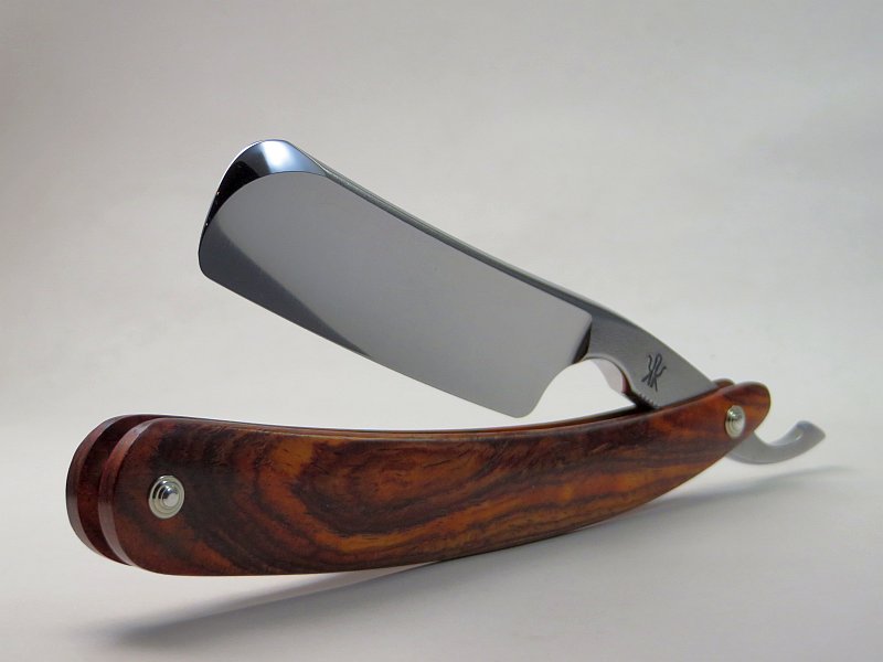 Он у меня был уже, фирменного знака нет, рукоять из рога буйвола. Не воняет, мягкий и нежный. Бритва Кораата- заказал себе еще одну из пустынного железного дерева рукоять, испанская голова, массивный шлиф. Харт стил и не тянет пробовать- шлиф у некоторых не нравится уже на картинке, грубый финиш, сталь как у Дово с 1 процентом угля- это О1 или 1.2510. Т.е. мою точить пореже надо будет. Можно из марочного напильника клинок заказать, но пока хватает того что есть. Через год можно будет дальше подумать- но если заточка хорошо держаться будет, то новых бритв брать не буду.