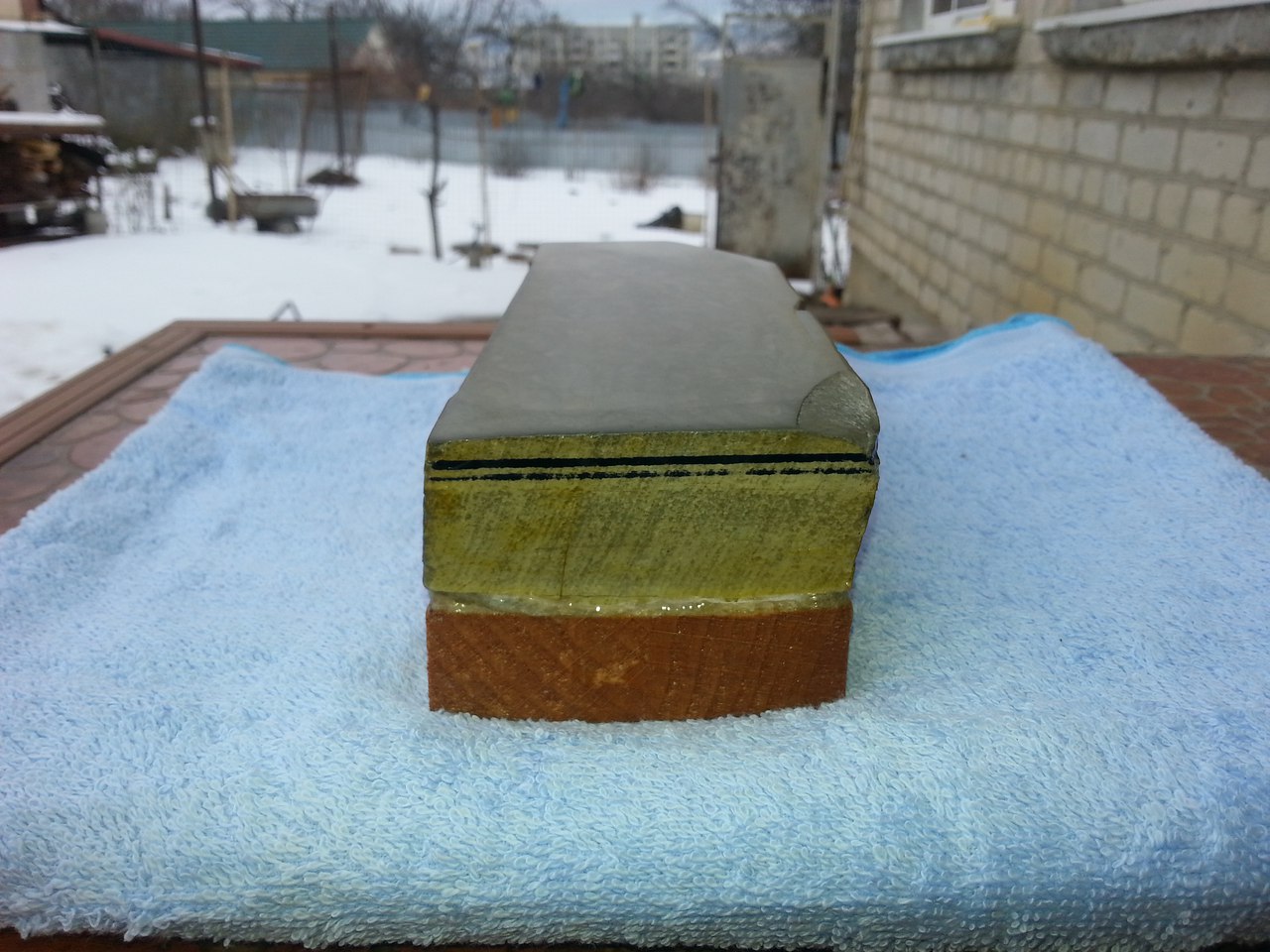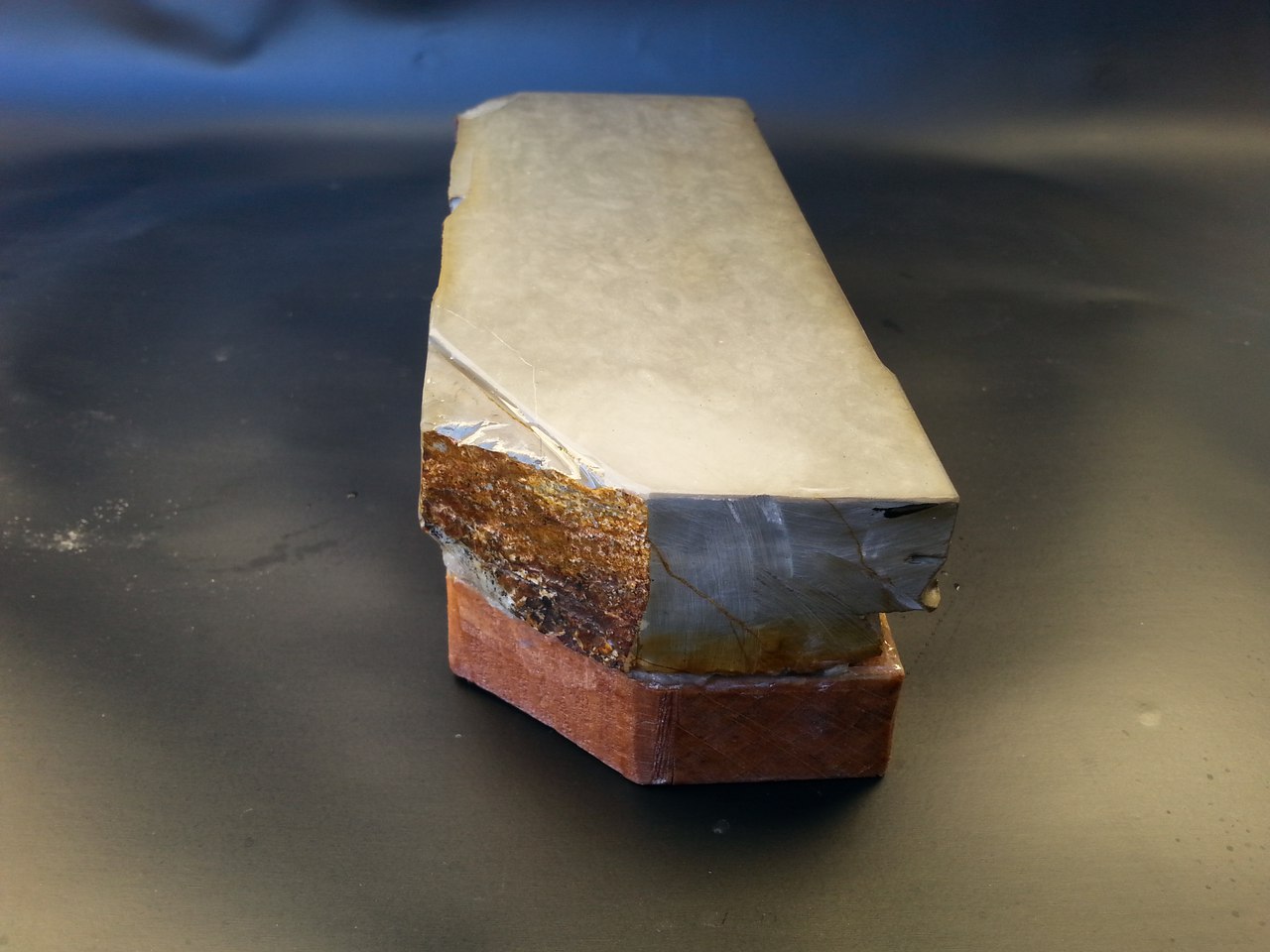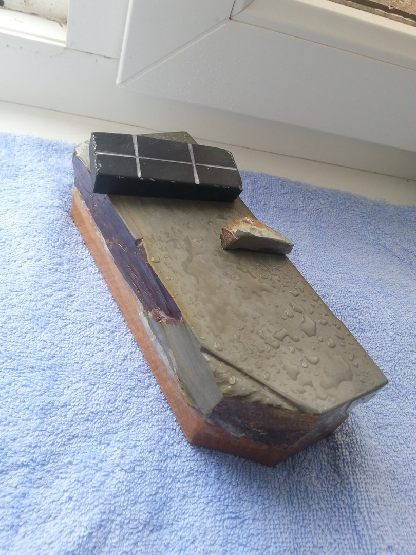 Re: Продаётся от SmileЯпонский Финишный камень.Nakayama Kiita Lv-(4.5-5).Прекрасный Финишный камень для опасных бритв и ножей.Никаких токсических линий и включений.Очень тонко работает.Прямой бритве трещина не мешает,но если раздражает,возможно отрезать по трещине ,и получим томо нагуру высокого качества,для наведения суспензии(размер камня позволяет!).Бонусом отдам алмазную пластину,для наведения суспензии.И кусочек сланца "Язык Дракона".