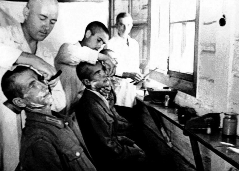 Re: Интересные фото с бритвойНемецкие военнопленные в лагерной парикмахерской в Челябинской области. Немецкие военнопленные содержались на Южном Урале с 1942 года.