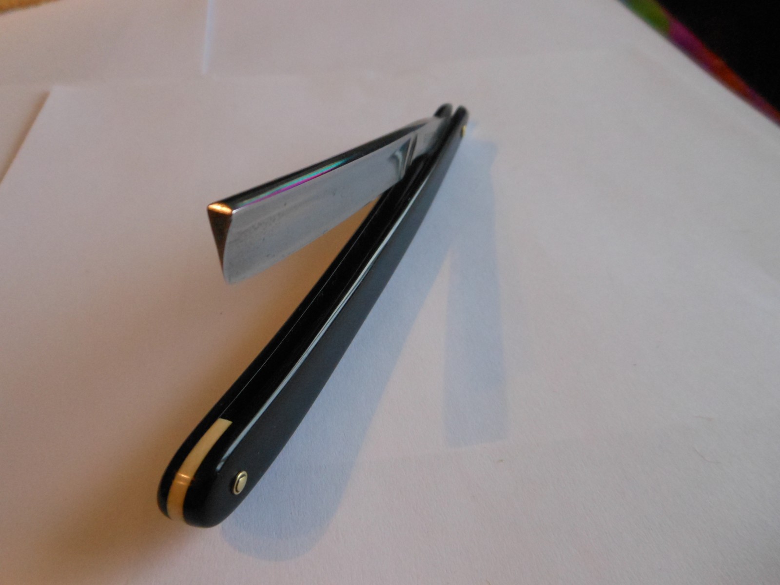 ручка отправилась в коробочку, пусть моль доедает. новая акрил 3 мм. клин -- пластик . ну и GANBELL по ходу дела оказался французом, хотя прямых сведений в нете не накопал, но вот умные люди так говорят (Сергей В) соотношение ширины обуха-полотна 4х12мм, т. е. 1\3. бритва сточена, но бреет хорошо. ручка временная, хочу подобрать пластик под цвет старой кости.