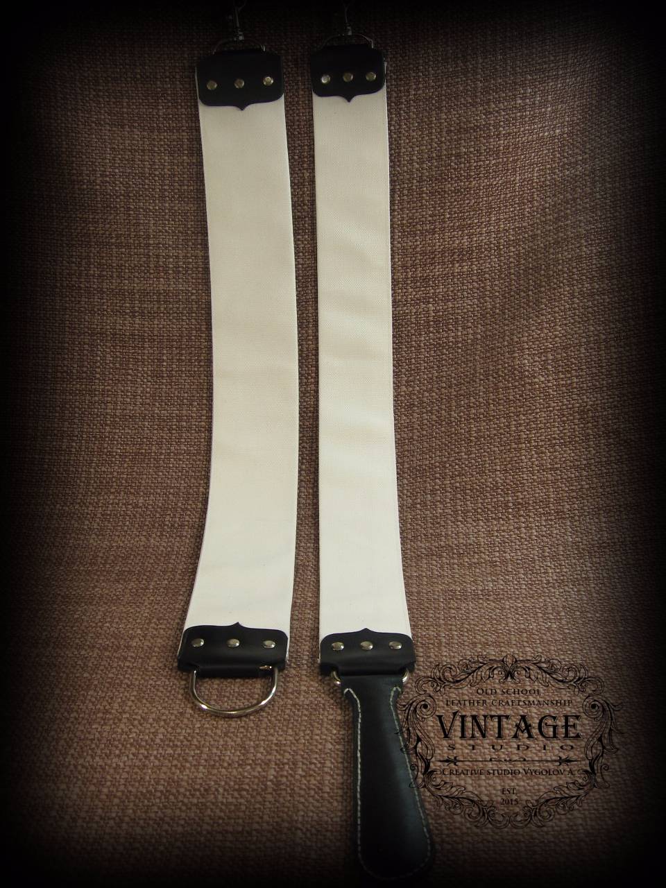 Re: Изготовление ремней для правкиПодвесные льняные ремни отдельные, а также подстыкованные к чистым подвесным кожаным (КРС или лошадка). Расширил свои горизонты изготовления.