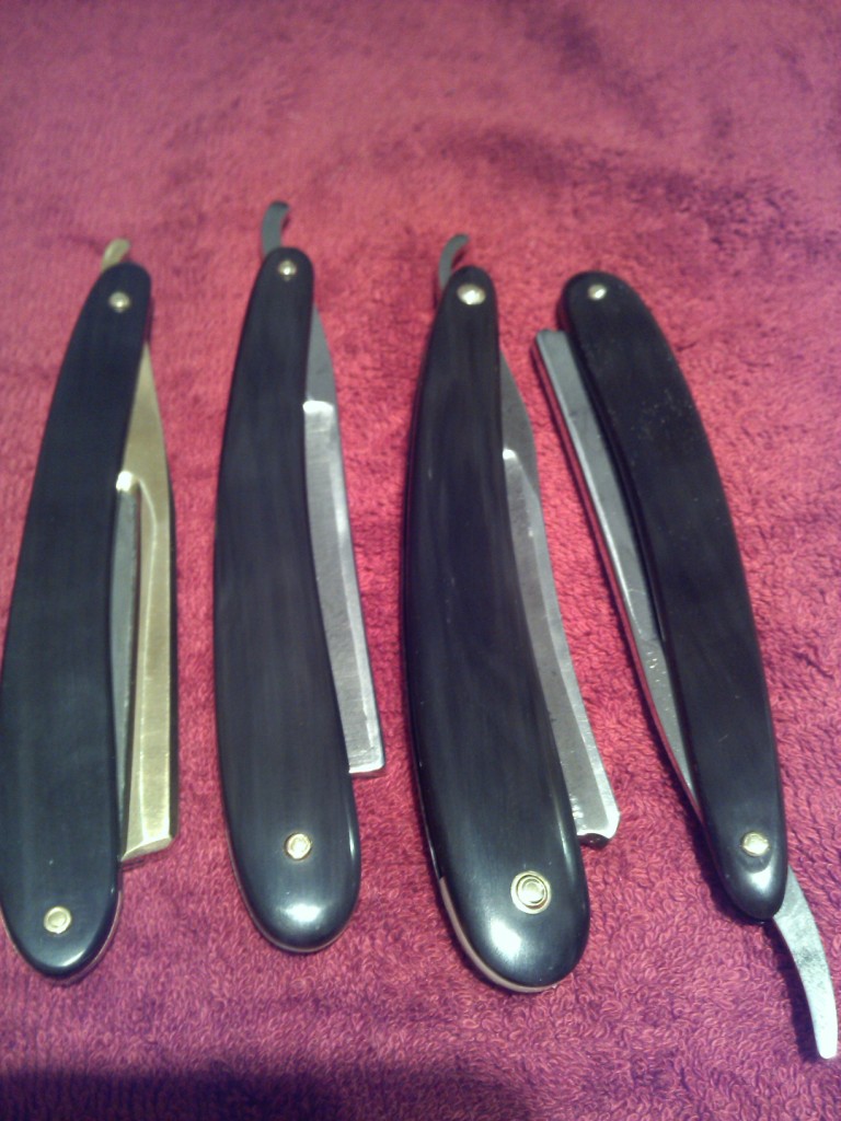 Периодически покупаю на Ебау английские бритвы с ручками из рога. Весь древний рог на замену (однозначно) - если бритвой планирую бриться. Если на полку, то ручку менять нет необходимости, и восстанавливать тоже - "зачем старушке подтяжки лица?" Складываю в коробку из под обуви и в антресоль. Собственно процесс: Первые попытки были неудачные, пользовался советами, проверил все рекомендации. http://britva.ru/forum/viewtopic.php?f= ... start=1940" onclick="window.open(this.href);return false; /22.05.16_20:41/ http://britva.ru/forum/viewtopic.php?f= ... start=1920" onclick="window.open(this.href);return false; /14.05.16_21:44/ Правил плашки (грел феном, в воде , в масле) - все мимо. Проблему решил для себя так. Заготовки (покупаю на Ебау) размером 160-60-3 мм (толстые (6-7 мм) не нужны - коробятся сильнее). Приходят связанные и прямые - всегда. Если не разрезать на две, так и останутся прямыми. Если распилить на заготовки сразу начнут гнуться причем не предсказуемо. На фото (1,2 пара пригодные, треть пару необходимо разворачивать на 180 или в брак). Плашки связываю за один конец, развернув так: фото№1 Через минимум две недели выбираю пару и собираю ручку и использование клинышка, что-бы изгибы компенсировали друг-друга. Ручкам больше полугода - нет и намека на искривление. фото№4 От нагревания рог портится: высыхают, становятся хрупкими, теряют красоту. Использую его естественное желание изогнуться. Спорить не буду.