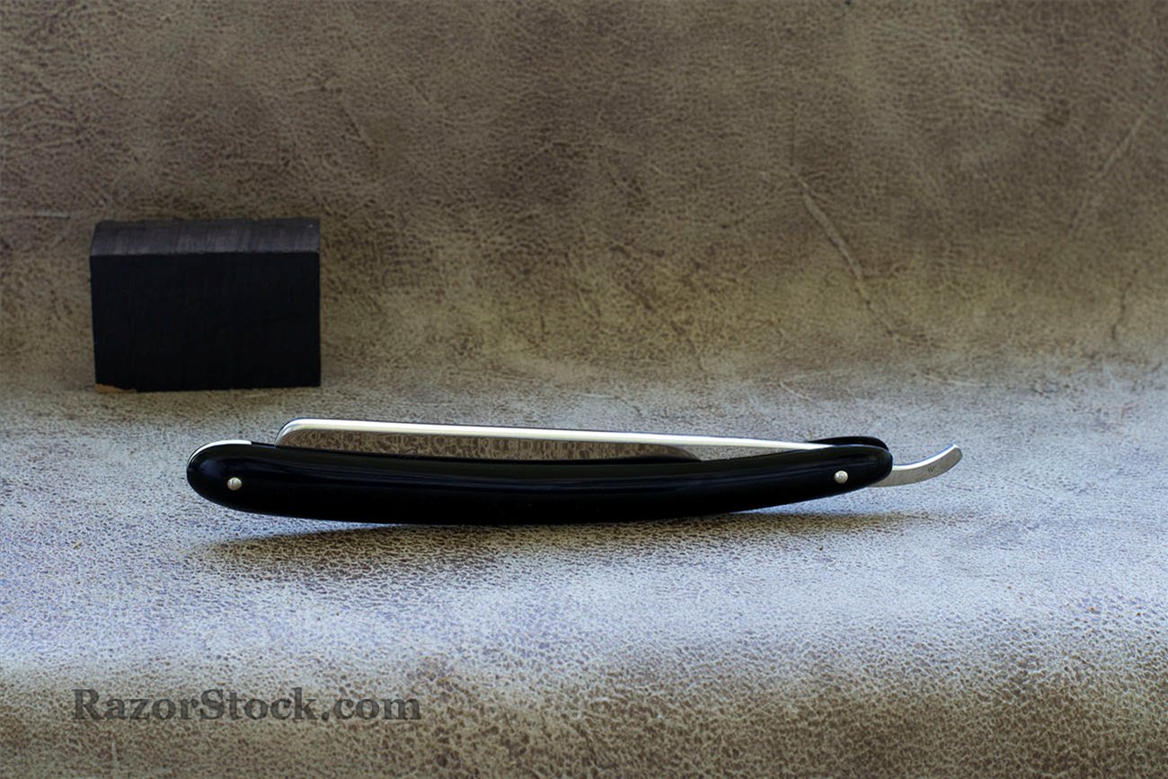 Бритва находится в прекрасном состоянии, мощный, тяжелый английский холлоу граунд в лучших своих традициях. Вогнутость полная, ширина 21 мм, (13/16) спинка 6мм. Бритва либо совсем не была в использовании, либо точилась очень мало и аккуратно, я не заметил никаких изменений геометрии вызванных заточкой. Заточена и готова к бритью, прекрасно проходит тест на рез волоса. Старая роговая рукоять была заменена на новую из рога буйвола. Бритвы от Джорджа Джонсона можно отнести к числу редких бритв из Англии. Фирма просуществовала с 1815 года и приблизительно до 1905 года, причем последние годы торговой маркой владел Артур Ламберт а не представители семьи Джонсон. Период времени когда фирма производила бритвы был намного короче периода ее существования, поэтому можно наблюдать следующую картину - встречаются либо очень старые в плохом состоянии бритвы от Джордж Джонсон, либо нечто сточенное или малопригодное для использования. Продано Johnson Show
