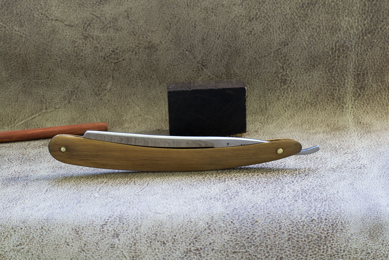 Бритва от одного из старых шведских производителей, период производства - середина 19 века. Информации о E.G. Gustafson почти нет, в частности я нашел сведения о том, что в фирме господина Густавсона трудилось всего 3 человека - он сам, его сын и ученик по фамилии Хеллберг, впоследствии открывший свою фирму, знаменитую изделиями под маркой J.A Hellberg. Масштабы производства говорят о большой редкости бритв г-на Густафсона и их большой культурной значимости. За все время своей работы я не встетил двух даже близко одинаковых бритв E. G. Gustafson, хотя все они имели много общего, почти все имели вонутость - клин и обладали эбеновой рукоятью. Несмотря на скромные масштабы качество бритв заслуживает уважения. Ширина полотна 5/8 (15.6мм) Спинка 4.8 мм. Новая рукоять из черного гренадила, так же использованы шайбы моего производства. Отличная геометрия полотна, качественная углеродистая сталь. Бритва заточена и готова к бритью. Продано Густафсон Show
