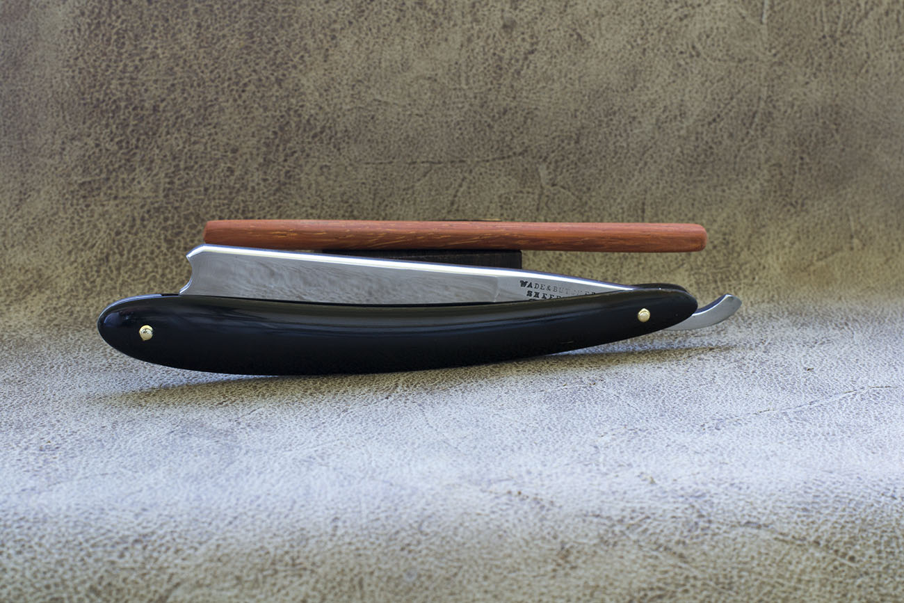 Бритва от культового английского бренда Wade&Butcher. Время производства - 60-70 годы 19 века. Родная роговая рукоять пришла в негодность и была заменена на новую из черного рога буйвола олдскульного шеффилдского дизайна без клинышка, удалось сохранить родные стальные шайбы. Бритва была в использовании совсем немного и предыдущий владелец не успел испортить геометрию неправильной заточкой. Я лишь снял налет времени и произвел заточку. Ширина полотна 20.5 мм. (13/16), спинка - 6.1 мм. Бритва заточена и готова к бритью. Ссылки по теме Инфо по производителю http://britva.ru/forum/viewtopic.php?f=28&t=1663" onclick="window.open(this.href);return false; продано Wade&Butcher Barber's Notch Show