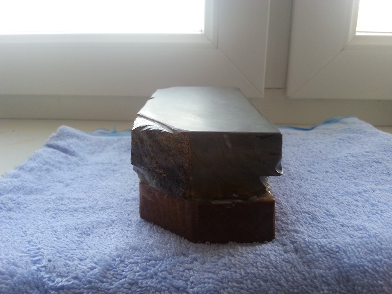 Re: Продаётся от SmileЯпонский Финишный камень.Nakayama Kiita Lv-(4.5-5).Прекрасный Финишный камень для опасных бритв и ножей.Никаких токсических линий и включений.Очень тонко работает.Прямой бритве трещина не мешает,но если раздражает,возможно отрезать по трещине ,и получим томо нагуру высокого качества,для наведения суспензии(размер камня позволяет!).Бонусом отдам алмазную пластину,для наведения суспензии.И кусочек сланца "Язык Дракона".