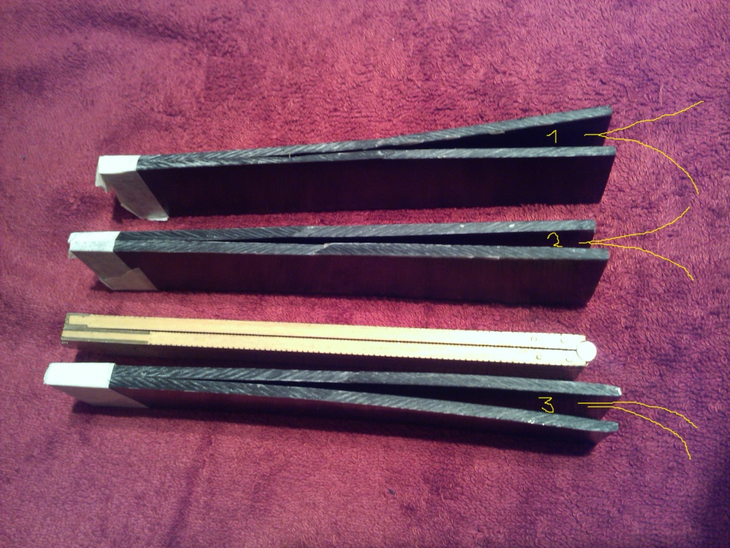Периодически покупаю на Ебау английские бритвы с ручками из рога. Весь древний рог на замену (однозначно) - если бритвой планирую бриться. Если на полку, то ручку менять нет необходимости, и восстанавливать тоже - "зачем старушке подтяжки лица?" Складываю в коробку из под обуви и в антресоль. Собственно процесс: Первые попытки были неудачные, пользовался советами, проверил все рекомендации. http://britva.ru/forum/viewtopic.php?f= ... start=1940" onclick="window.open(this.href);return false; /22.05.16_20:41/ http://britva.ru/forum/viewtopic.php?f= ... start=1920" onclick="window.open(this.href);return false; /14.05.16_21:44/ Правил плашки (грел феном, в воде , в масле) - все мимо. Проблему решил для себя так. Заготовки (покупаю на Ебау) размером 160-60-3 мм (толстые (6-7 мм) не нужны - коробятся сильнее). Приходят связанные и прямые - всегда. Если не разрезать на две, так и останутся прямыми. Если распилить на заготовки сразу начнут гнуться причем не предсказуемо. На фото (1,2 пара пригодные, треть пару необходимо разворачивать на 180 или в брак). Плашки связываю за один конец, развернув так: фото№1 Через минимум две недели выбираю пару и собираю ручку и использование клинышка, что-бы изгибы компенсировали друг-друга. Ручкам больше полугода - нет и намека на искривление. фото№4 От нагревания рог портится: высыхают, становятся хрупкими, теряют красоту. Использую его естественное желание изогнуться. Спорить не буду.