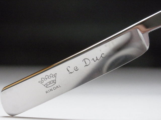 Вопрос знатокам.Le Duc, Le Prince и Royal Kindal выпускались как из обычной стали, так и из нержавейки, с различными оправами - от целлулоида и пластика до черепахи и слона. Но размер, независимо от стали, должен быть один у каждой модели. Le Duc должен быть ¼ hollow ¾ дюйма( ака 6/8) с прямой кромкой. Все, что меньше и кривее - уточено. Японцы просто пастами не пользовались- поэтому у бритв из Японии приличные и равномерные обухи (обуха?