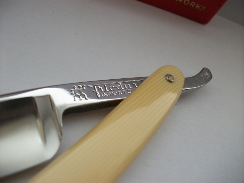 Состояние: Углеродистая сталь. Заточена и готова к бритью. При ширине полотна 14мм имеет очень массивный эрль и обушок, за счет этого в небольшой бритве чувствуется не присущая таким габаритам мощь. Цена: Продано Доставка включена. Spoiler Show