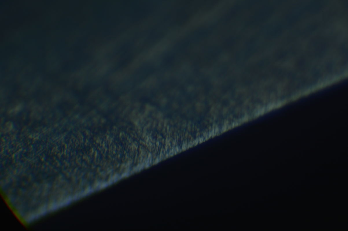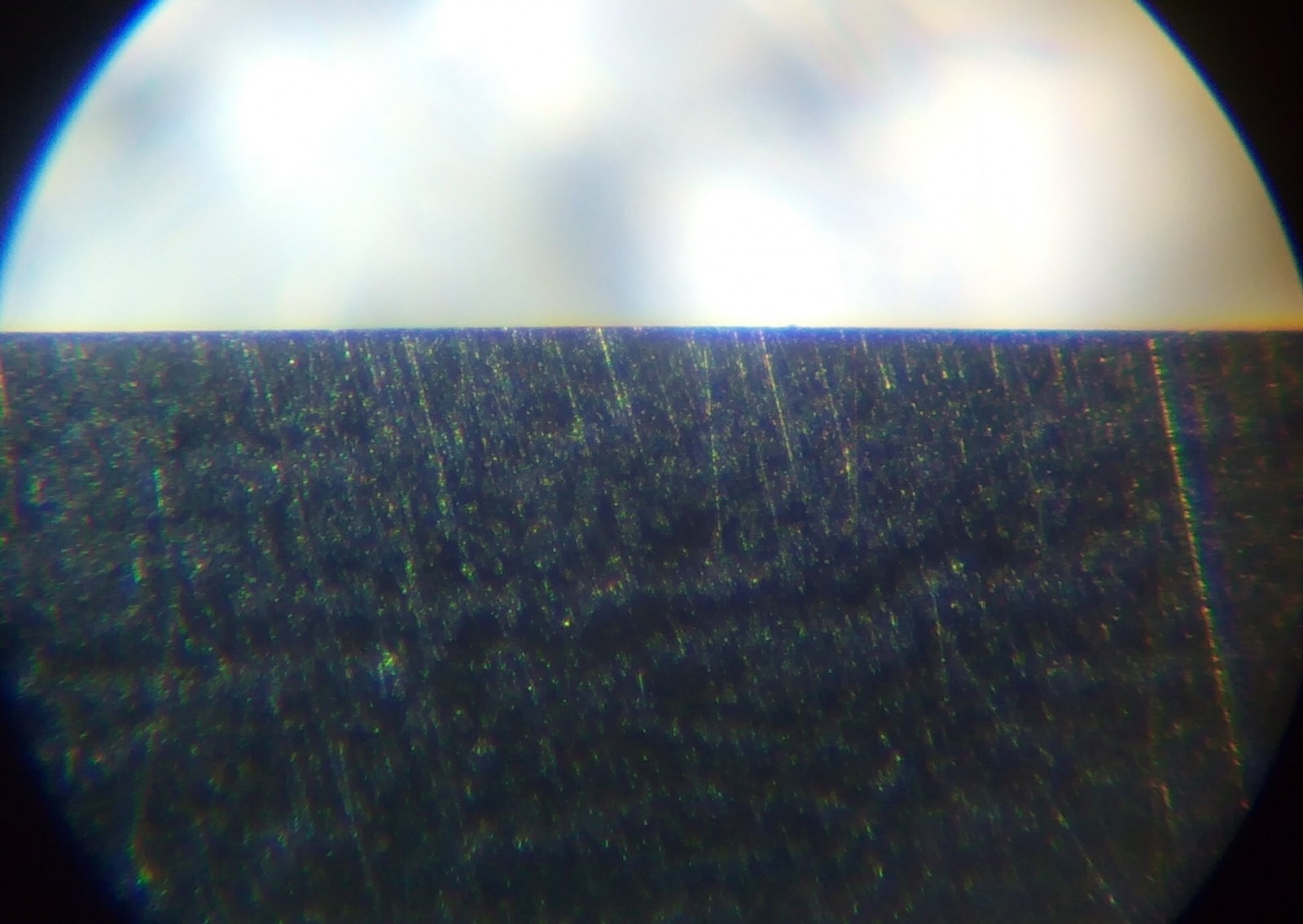 Re: Японские натуральные водные камни для бритв и их свойствДля лучшего восприятия уменьш увеличение и больше света, но и так всё ясно. Возьми любой 8000ник - результат лучше будет. В общем, чтд. Комплексное решение заточки - подбор и подготовка к работе сетов на основе синтетики и/или натуралов, нагуры, притиры, мусаты и ремни для правки.