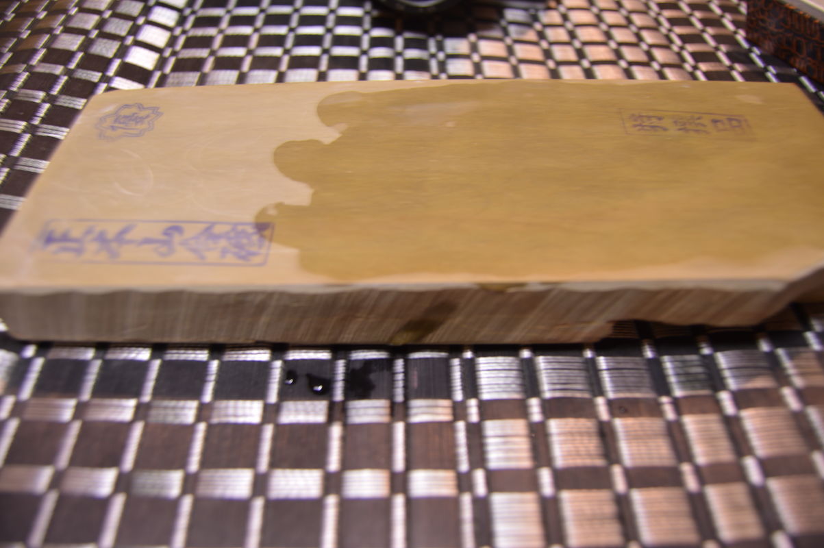 Re: Продаётся от artemarut1Spoiler Show Японский финишный камень, асаги с желтыми кольцами (кан) и микро черными точками типа нашиджи, на лицевой стороне два штампа, один виден едва, второй просматривается полностью, есть пара штампов с торцов. Твердость у камня 5+ , суспензии своей не дает, можно сказать вечный. На фото и видео состояние камня на данный момент. Размер 150/87/24мм в максимальных измерениях. В общем могу сказать "отборный финишный камень для бритв без каких либо включений и трещин". Цена Продан с доставкой по России.