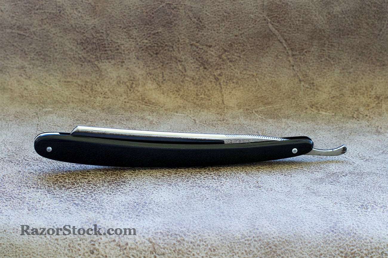 Бритва находится в прекрасном состоянии, мощный, тяжелый английский холлоу граунд в лучших своих традициях. Вогнутость полная, ширина 21 мм, (13/16) спинка 6мм. Бритва либо совсем не была в использовании, либо точилась очень мало и аккуратно, я не заметил никаких изменений геометрии вызванных заточкой. Заточена и готова к бритью, прекрасно проходит тест на рез волоса. Старая роговая рукоять была заменена на новую из рога буйвола. Бритвы от Джорджа Джонсона можно отнести к числу редких бритв из Англии. Фирма просуществовала с 1815 года и приблизительно до 1905 года, причем последние годы торговой маркой владел Артур Ламберт а не представители семьи Джонсон. Период времени когда фирма производила бритвы был намного короче периода ее существования, поэтому можно наблюдать следующую картину - встречаются либо очень старые в плохом состоянии бритвы от Джордж Джонсон, либо нечто сточенное или малопригодное для использования. Продано Johnson Show